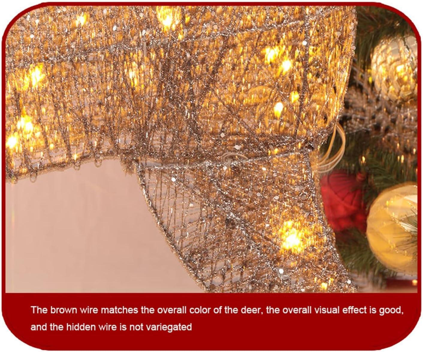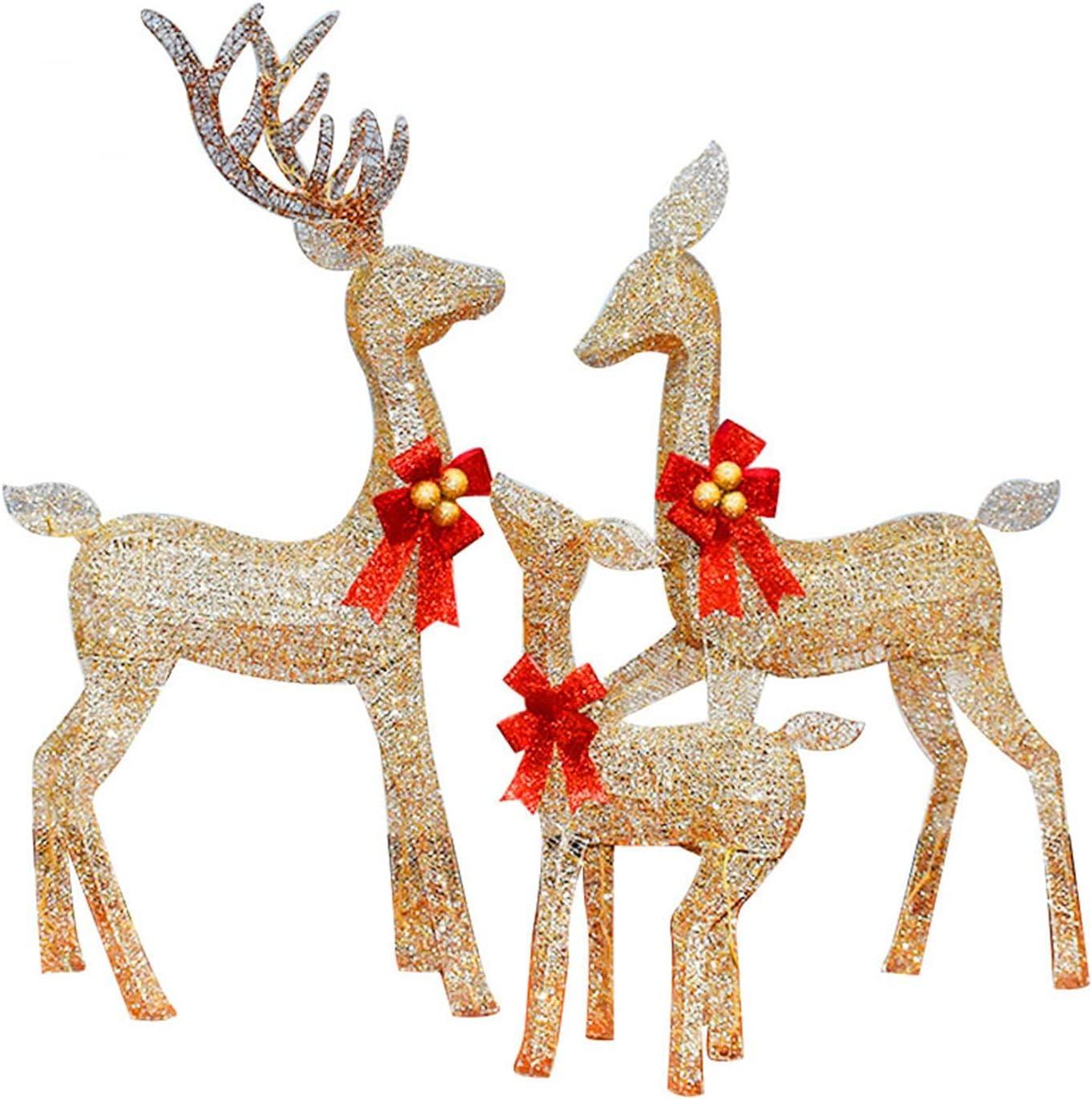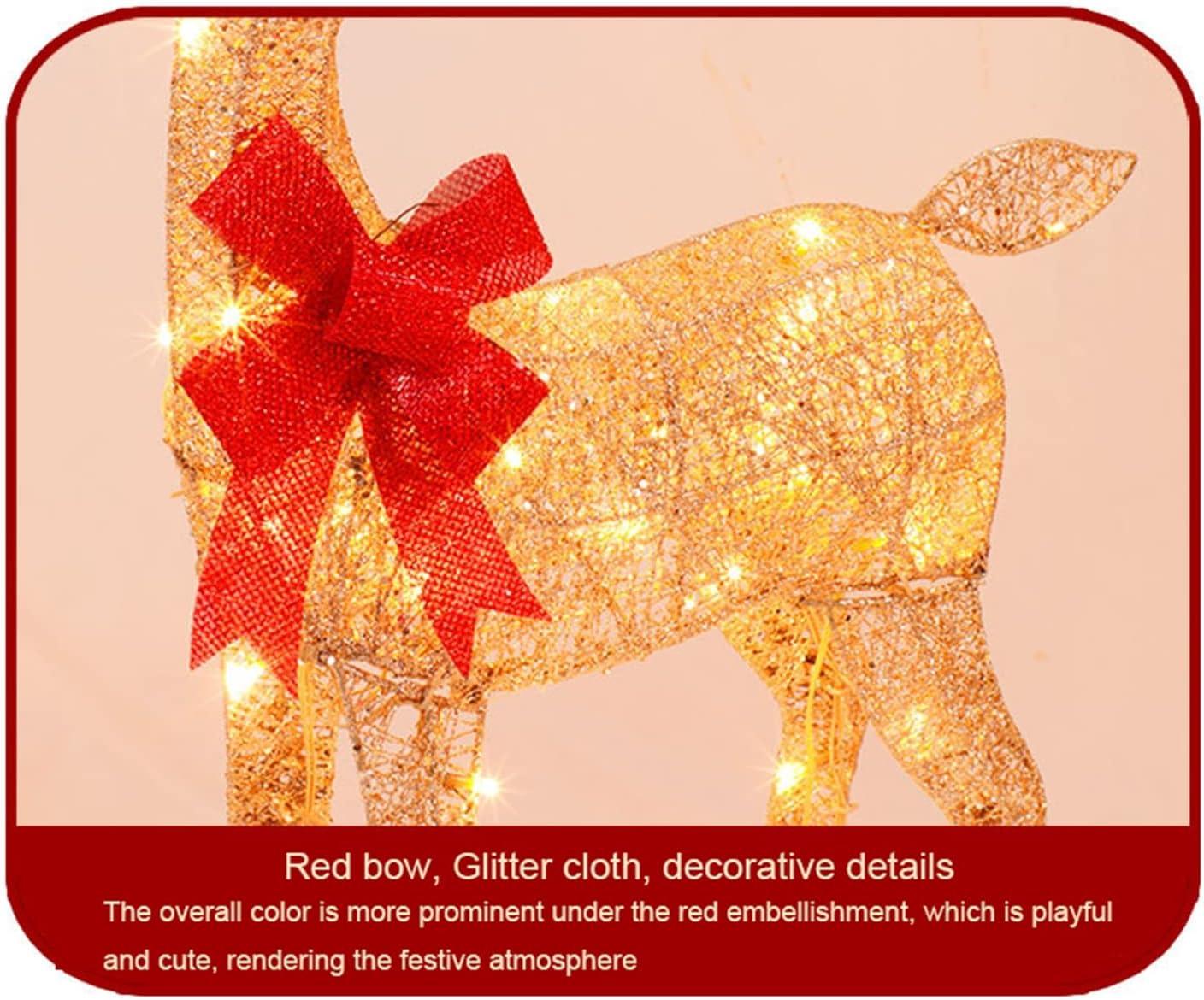 • Elegant Details: Male deer: 145*65*50cm,Doe: 120*80*20cm,Fawn: 75*50*15cm. Christmas outdoor decorations with 3 lighted deer family, Intricately designed with festive details like decorative bows and a shimmery, champagne, and red fabric for Christmas decorations.