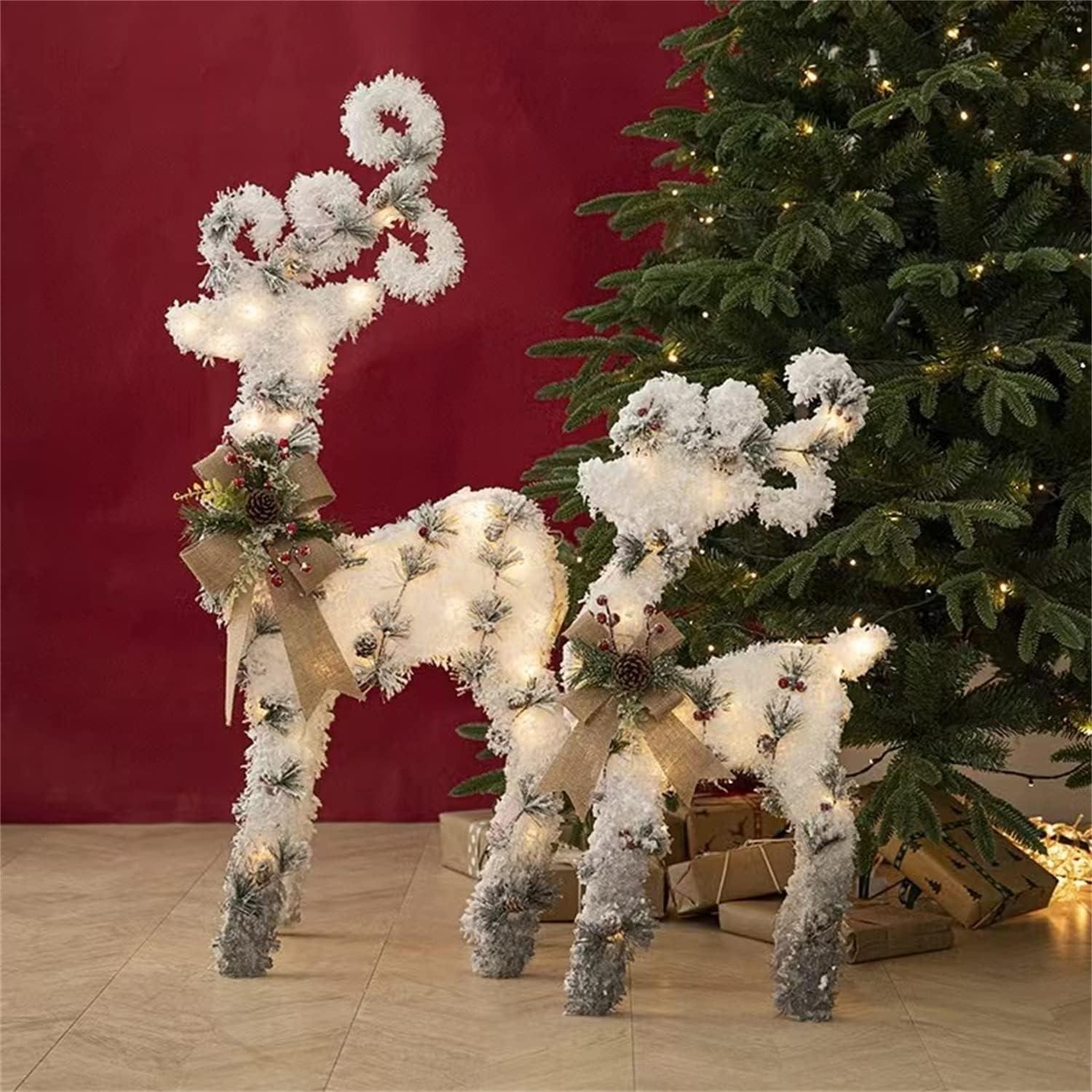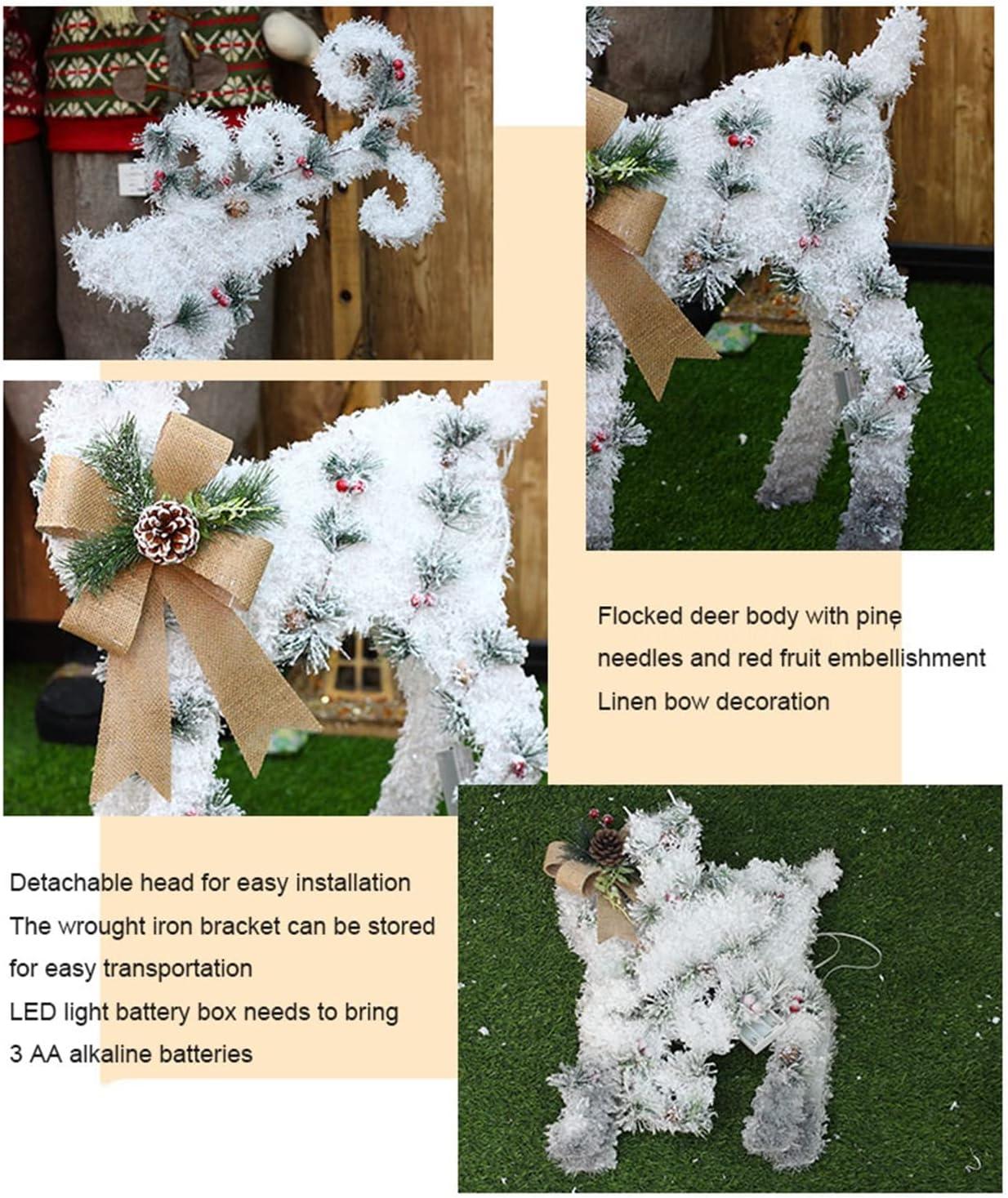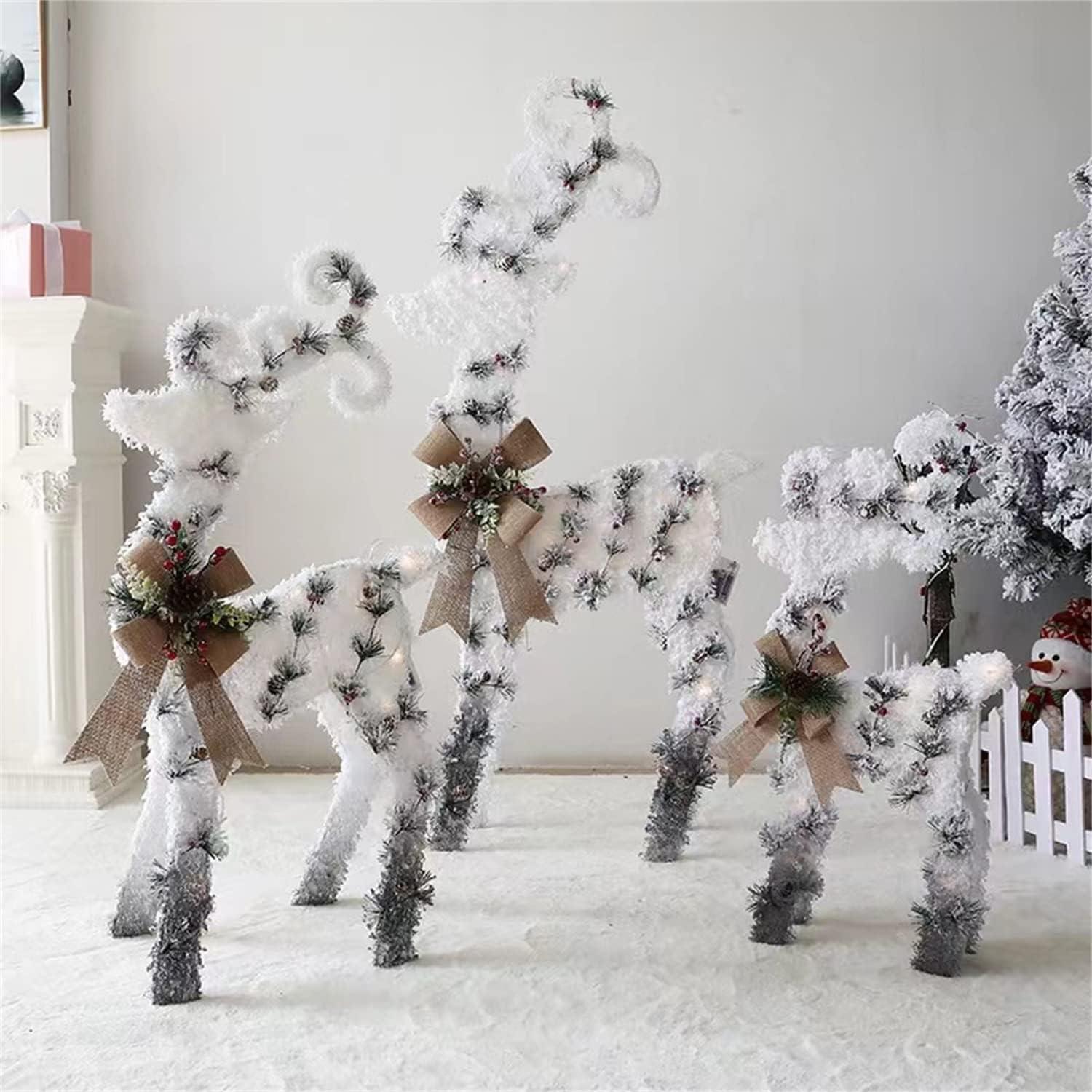 HJDSUDU Flocked Christmas Deer, 3 Piece Lighted Rustic Deer Family with LED Lights,3 Piece Reindeer Family Lighted Deer Set for Christmas Decorations Yard Art