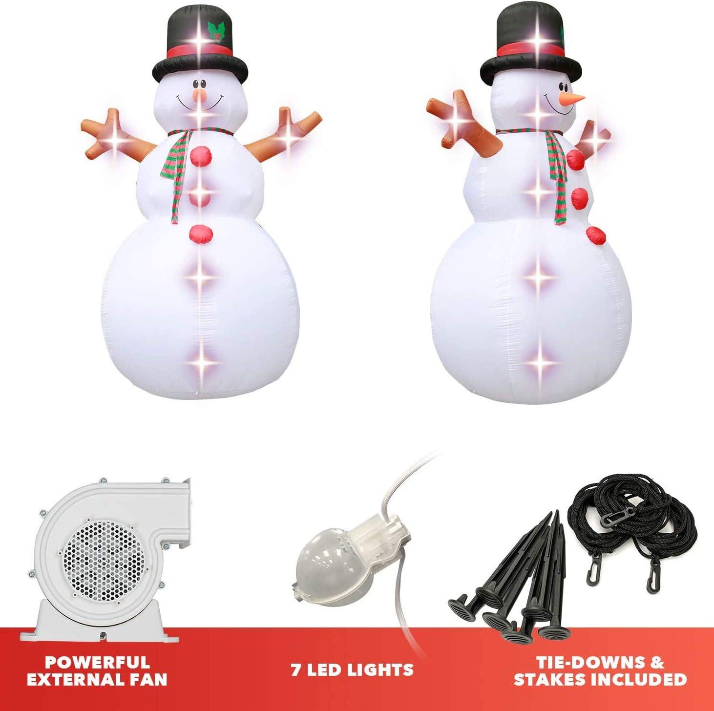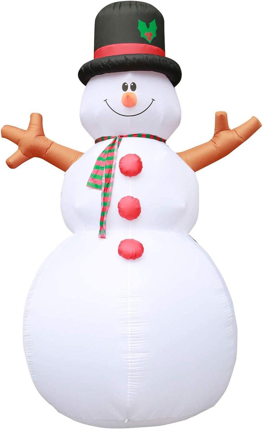 Holidayana 15 Foot Tall Giant Inflatable Winter Snowman Holiday Ornament Yard Decoration with Blower Fan, Tie Down Straps, and Ground Anchor Stakes