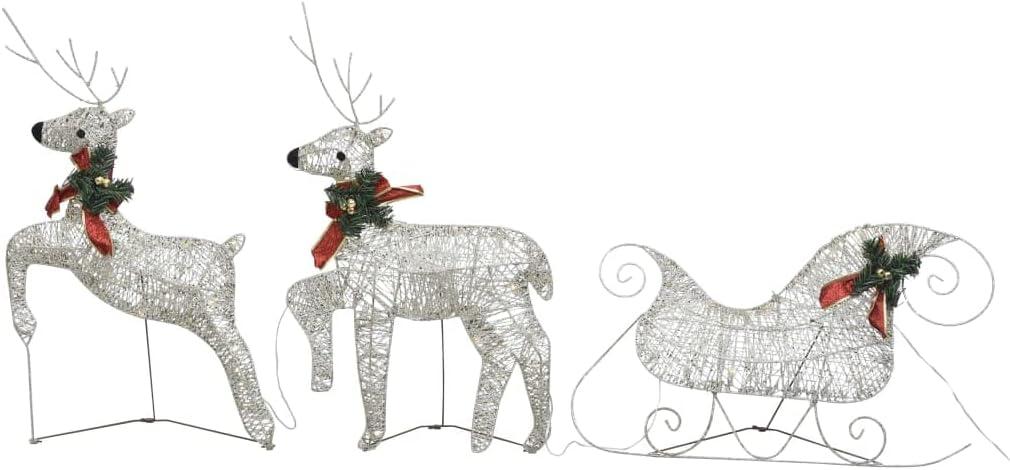 Home Garden Asomie Decor Seasonal Holiday Decorations Christmas Lighting Reindeer & Sleigh Christmas Decoration 60 LEDs Outdoor White US Stock Fast Shipment White