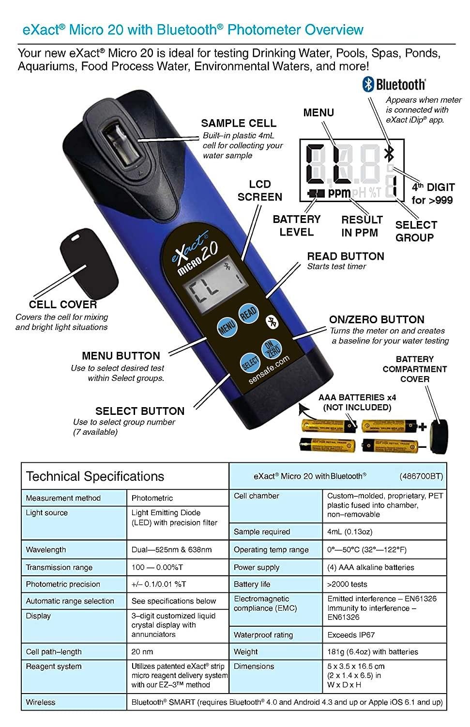 Industrial Test Systems,Inc Exact 486700-BT-KP Micro 20 Photometer with Smart Bluetooth Pool Kit