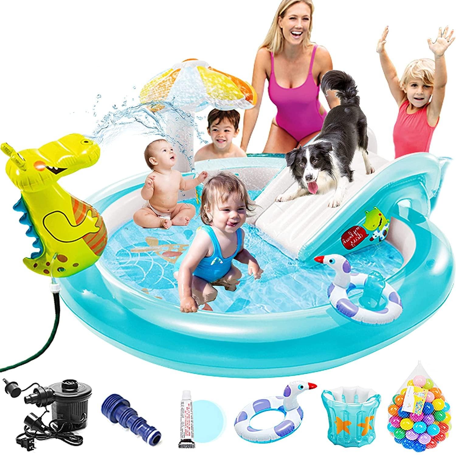 Inflatable Water Park,Water Bounce House waterslide,Bouncy House Water Slides inflatables for Kids and Adults Backyard or Outdoor,a Kiddie Inflatable Family Pool petz for Baby or Dogs