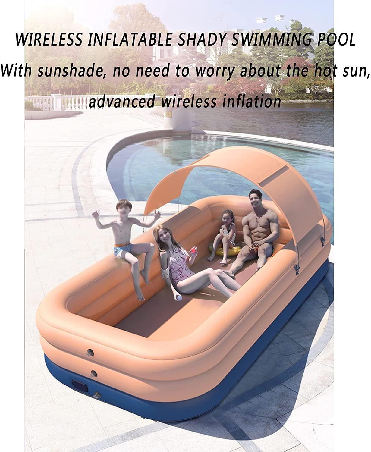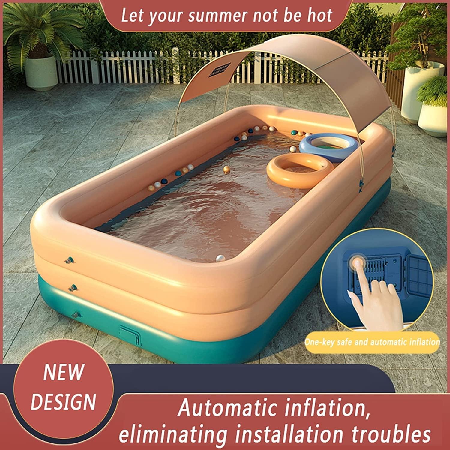 BTONG Family Above-Ground Swimming Pool, One-Button Automatic Inflation, No Air Pump Required, with Awning, Simple Backyard Setting, Adult Summer Water Party, Suitable for Backyard/Terrace/Beach