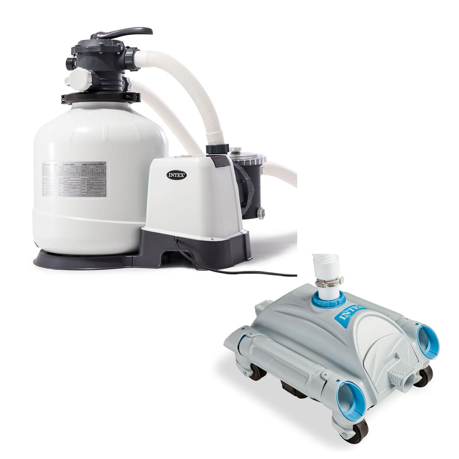 Intex 3000 GPH Above Ground Pool Sand Filter Pump and Automatic Pool Vacuum