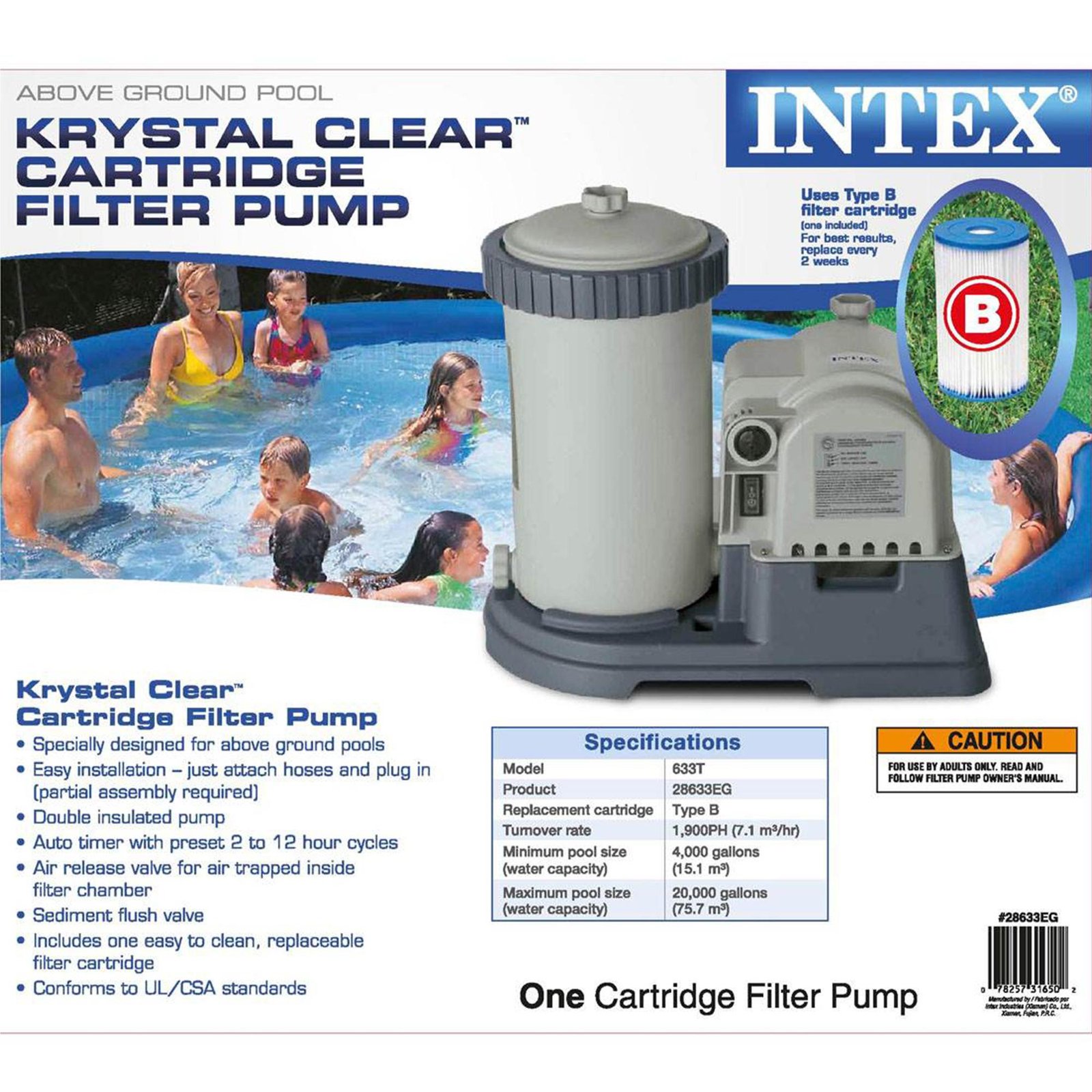 • Uses type “B” Intex filters (1 included)
