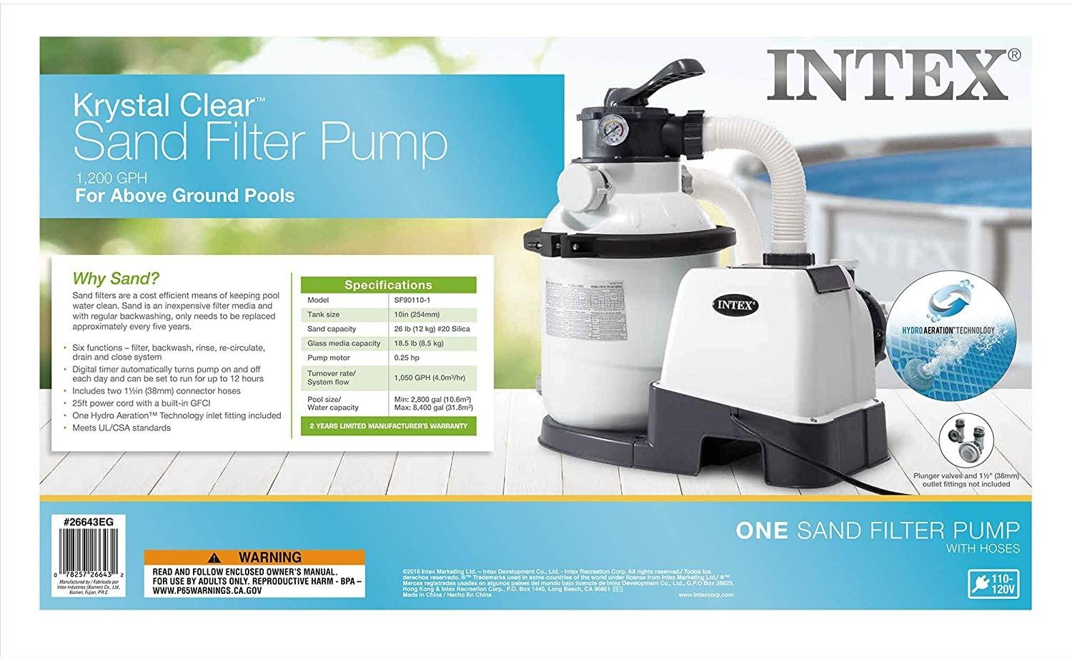 Intex Krystal Clear Sand Filter Pump for Above Ground Pools, 10-inch, 110-120V with GFCI & 28003E Deluxe Maintenance Kit for Above Ground Pools, 1, Blue