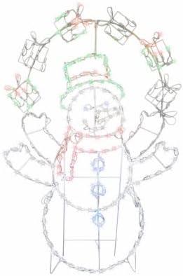 60″, Wire Frame Juggling Snowman, LED Tube Lighted, 222 LED Lights, Chasing Lights On Arms & Juggle Gift Boxes For Motion Look, Metal Stand & Stakes Included, 5′ Power Cord, Ul Listed Adapter Plug.