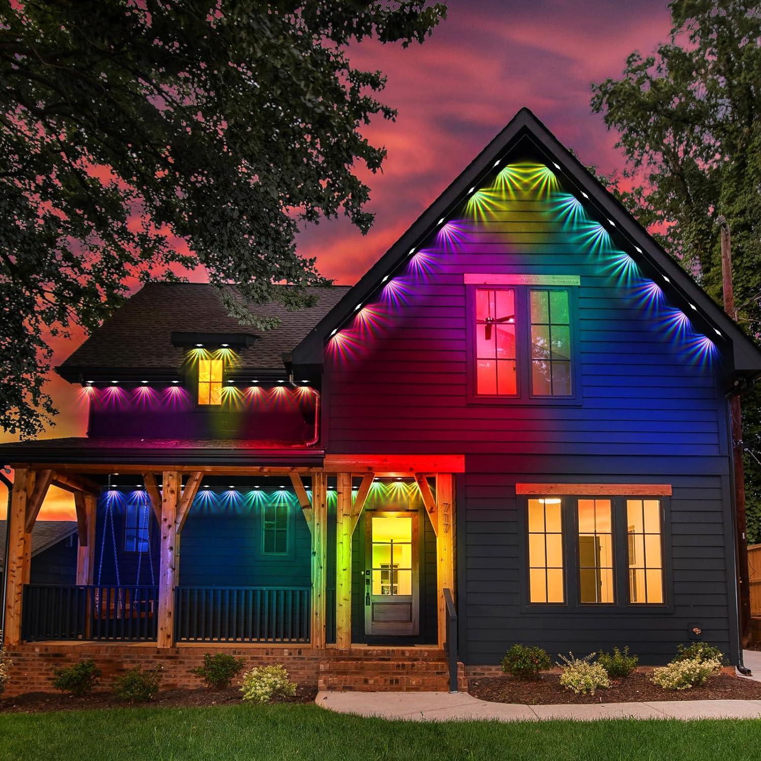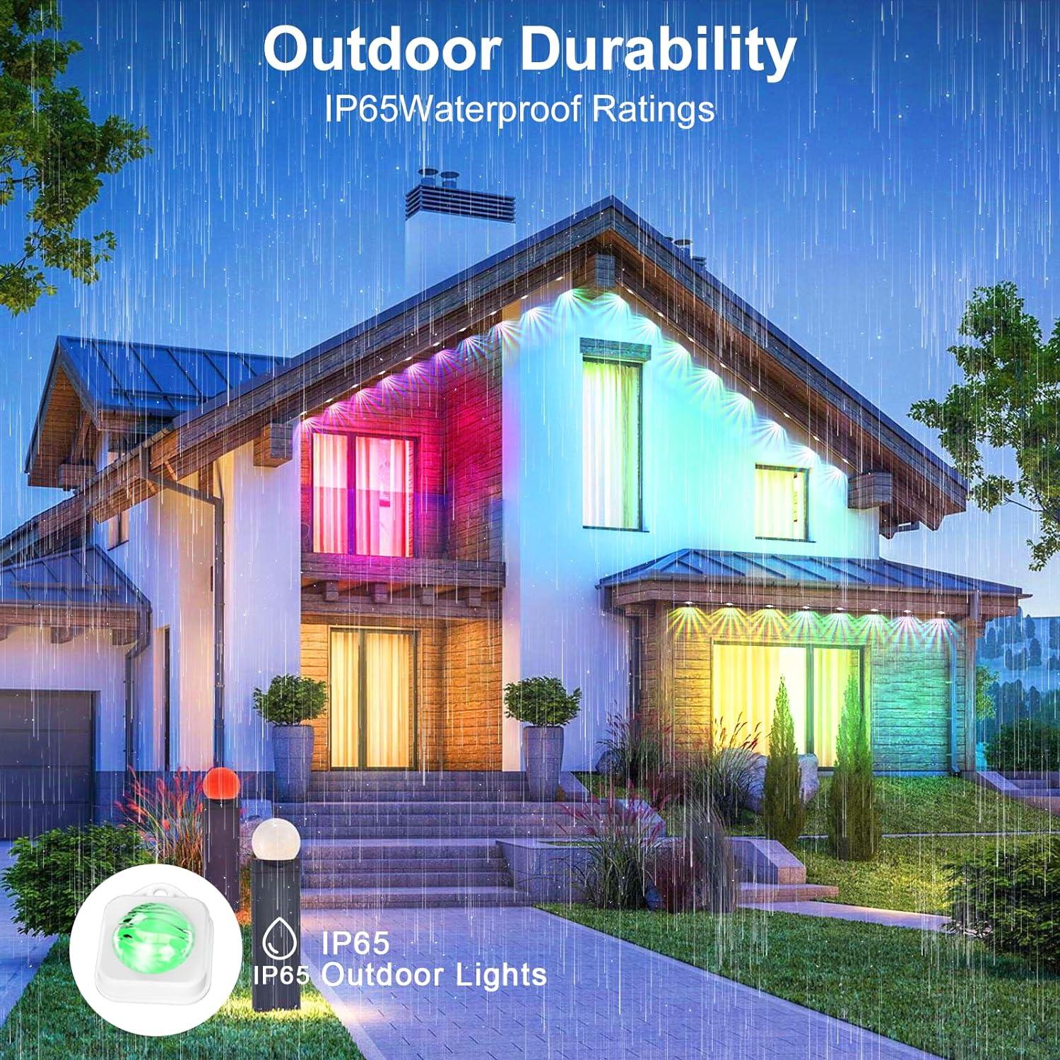 - Smart App & Voice:Use APP to Control Colors of Each Permanent Outdoor Light Independently and Set Timer Function to Light UP Your House at Night. Pair Permanent Lights with Alexa and Google Assistant for Smart Voice Control.