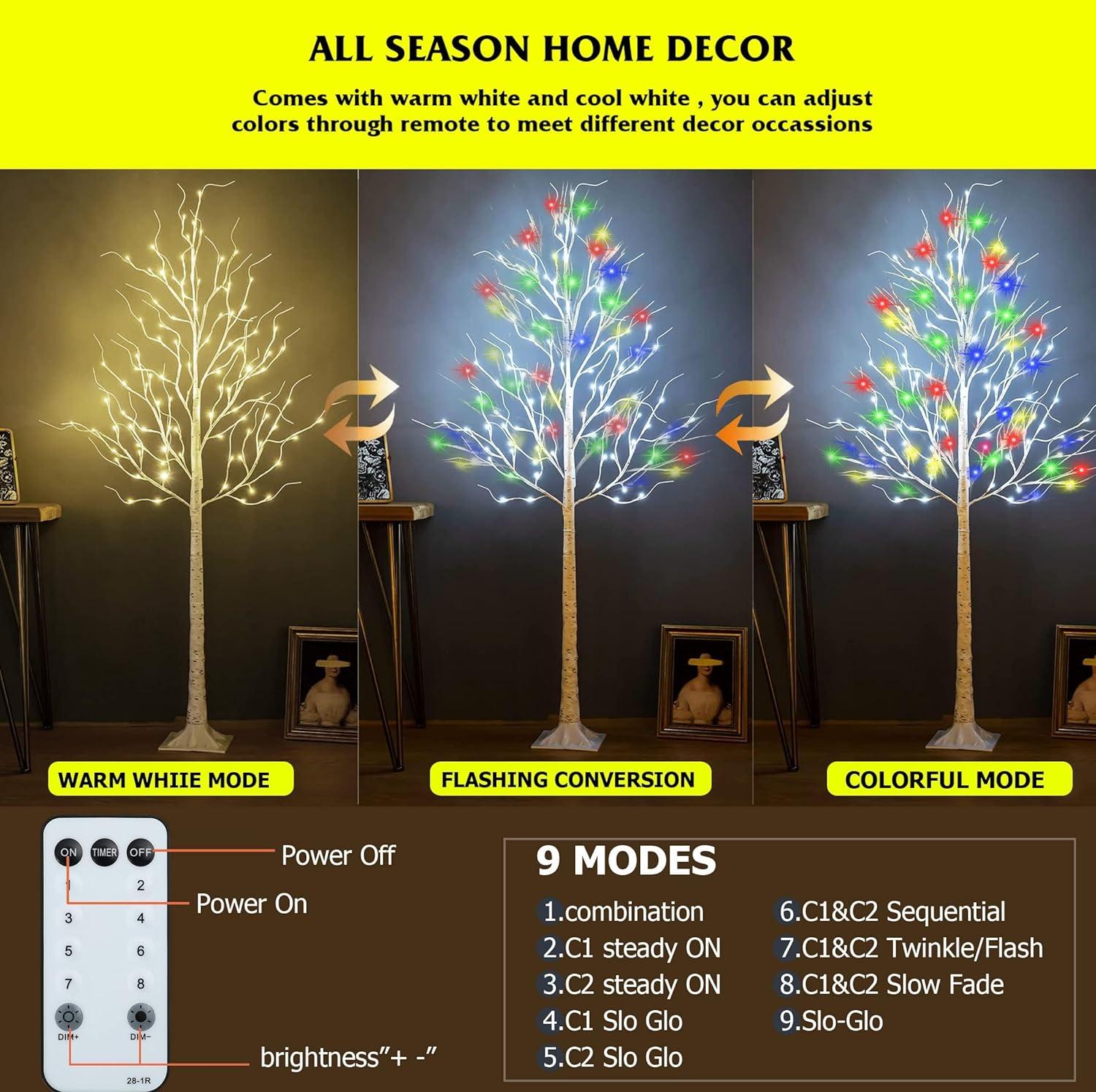 - 🎄 Flexible Design: Whether you choose the 4, 6, or 8 FT lighted birch tree, you’ll find it easy to adjust the shape to your liking. The dense branches lend a unique character to your tree, making it suitable for various occasions and holiday decor. It’s perfect for Halloween, Fall Thanksgiving Festival, and Christmas. You can even hang small ornaments on the branches to create a fantastic lighting atmosphere for your home or window display.