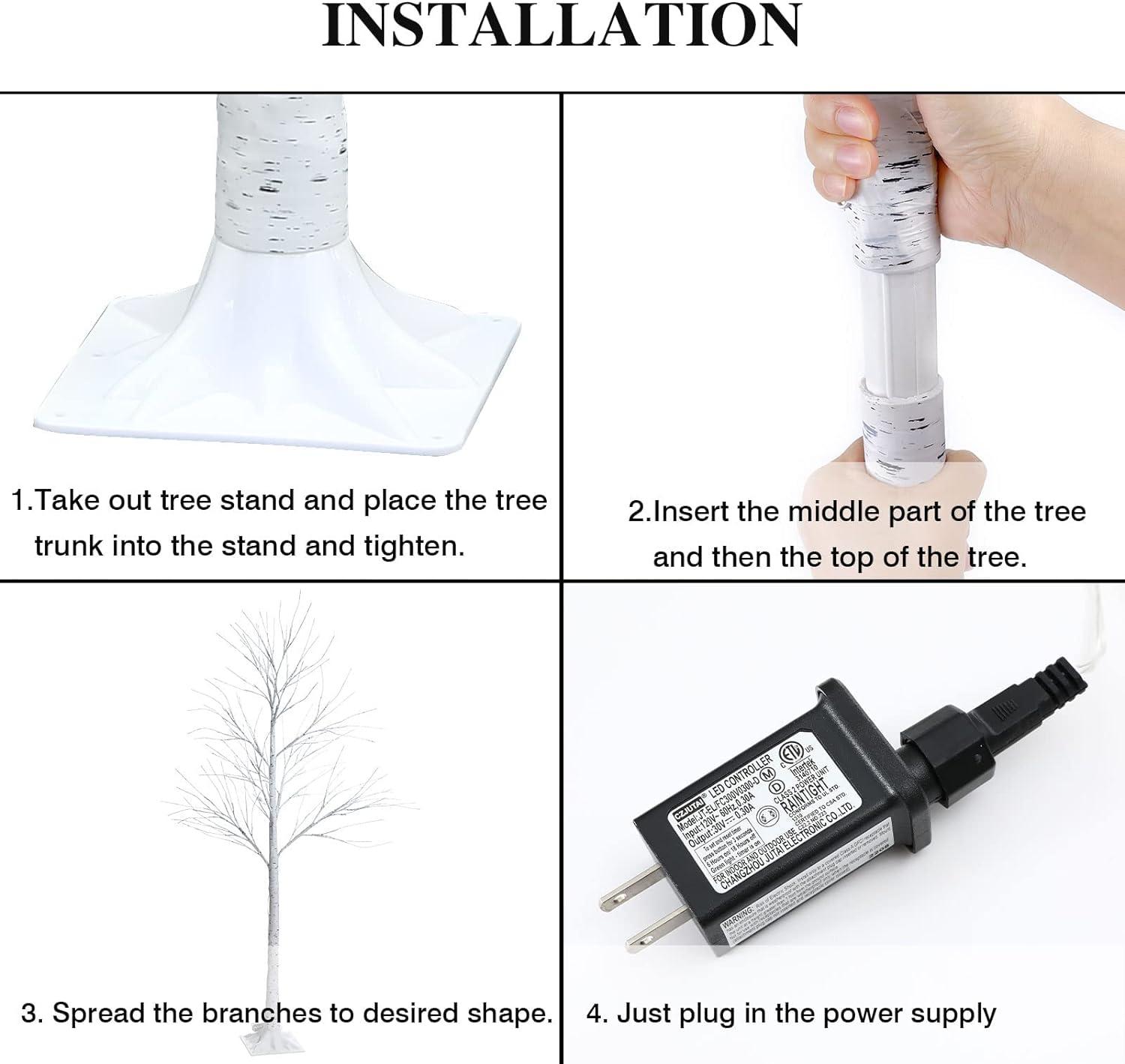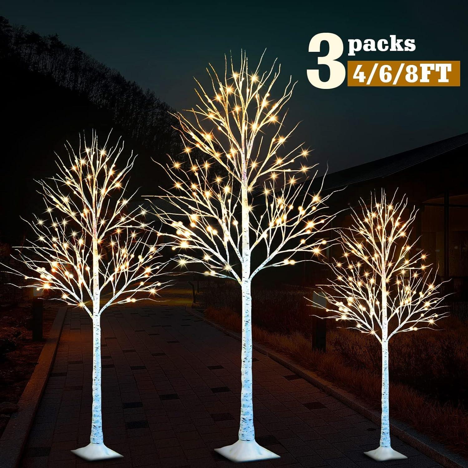 - 🎄Birch Tree with Lights: Available in 3 lengths – 4/6/8 FT, featuring 48 LEDs (4FT), 88 LEDs (6FT), and 160 LEDs (8FT), with easy on/off switch, warm and inviting illumination. These lights mimic the charm of birch trees with textured branches and lifelike birch bark, bringing joy and delight to your neighbors, friends, and family.