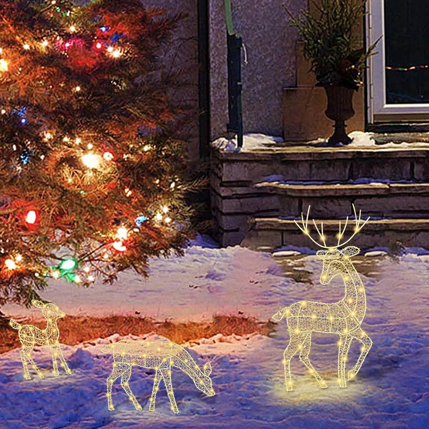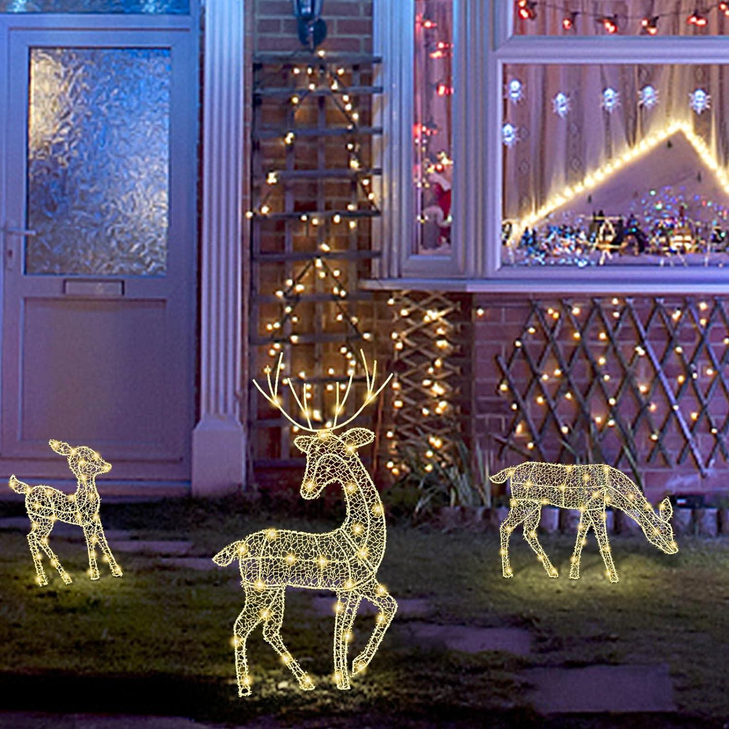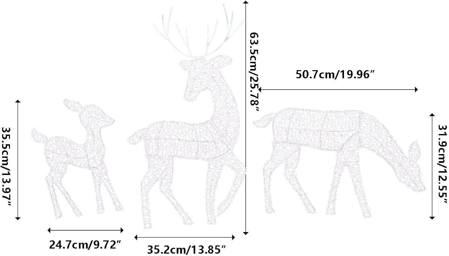 Christmas Deer Family Set Outdoor Yard Decoration, for Party Outhouse Garden Lawn Winter Xmas Decor, Reindeer Family Christmas Decoration Silver 201 LEDs 28.5 x 20.7 x 61.4
