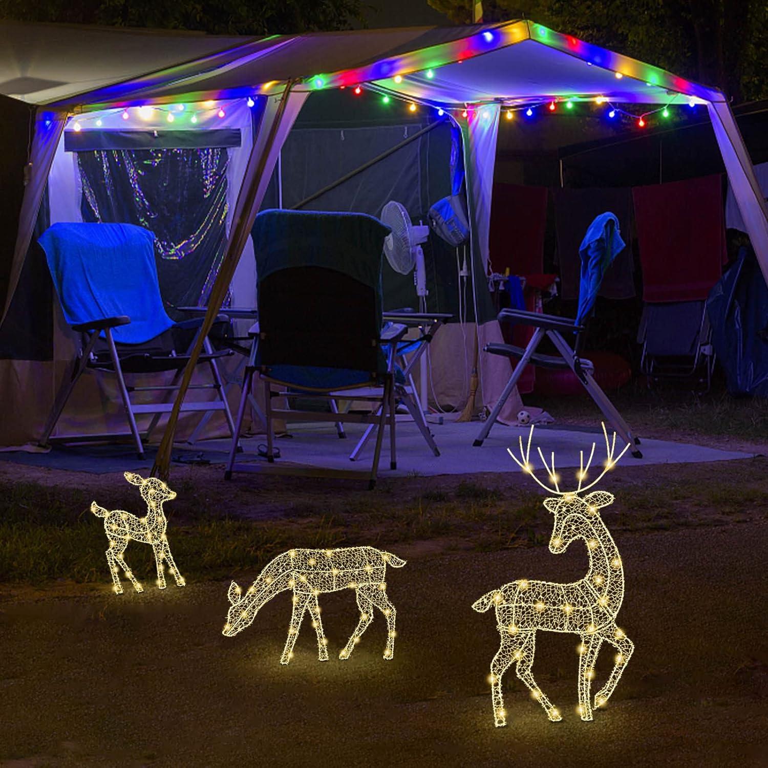 3 Pieces Lighted Reindeer Christmas Decoration Family Set,Outdoor Christmas Decorations Yard with LED Lights, Stakes, Zip Ties,Gloves.