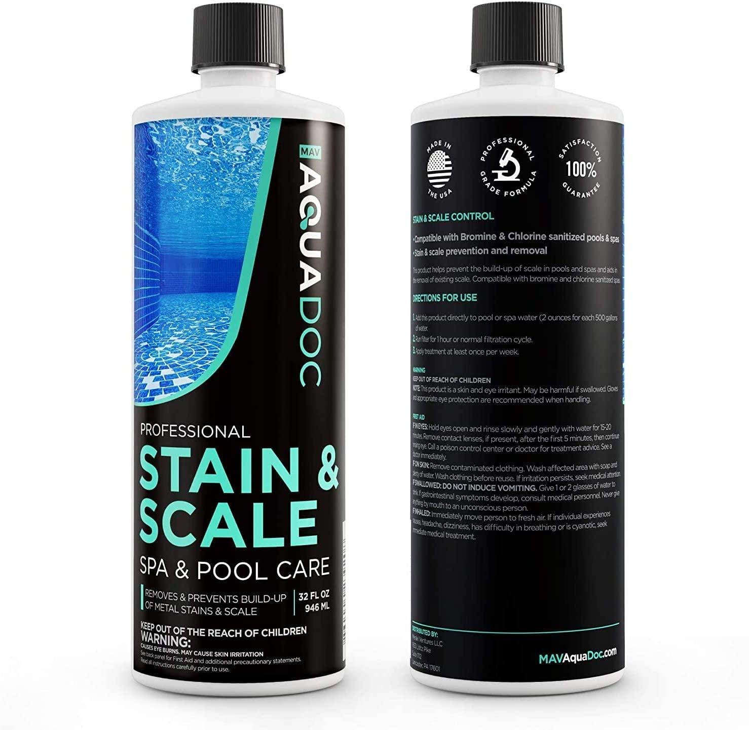 Mav AquaDoc Spa Stain and Scale Control for Hot Tubs, Scale Metal and Stain Control for Hot Tubs, Prevent & Remove Stains in Hot Tubs with Our Hot Tub Water Softener & Spa Descaler Chemical 32oz