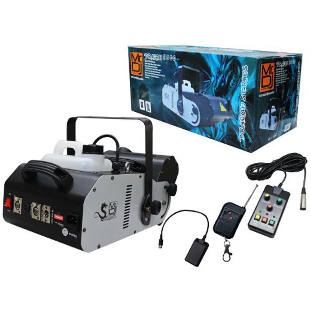 Mr. Dj DRAGON-3000 Fog Machine 3000 Watts Max High Output, Adjustable Head Angle, 10000 Cubic Feet P/M Output, 2 Liters Smoke Fluid Volume, Wired and Wireless Remote Control, 15 Feet Shooting Distance,110 VAC. Has DMX In and Out in a portable fixture that has built-in programs triggered from the remotes. This is a universal product and works with all DJ, Pro Audio, Home Audio equipment such as JBL, Absolute, Electrovoice, EV, Cerwin Vega, Peavey, JBL Pro, Tascam, Numark, Novation, Samson, M-Audio, Lexington, Soundcraft, CAD Audio, AKG, Korg, Bose, AKAI, Beat Port, Cortex, Gemini, Odyssey, Pioneer DJ, Peavey, Stanton, Casio, Yamaha, Lexicon and Tascam. , Product Features: