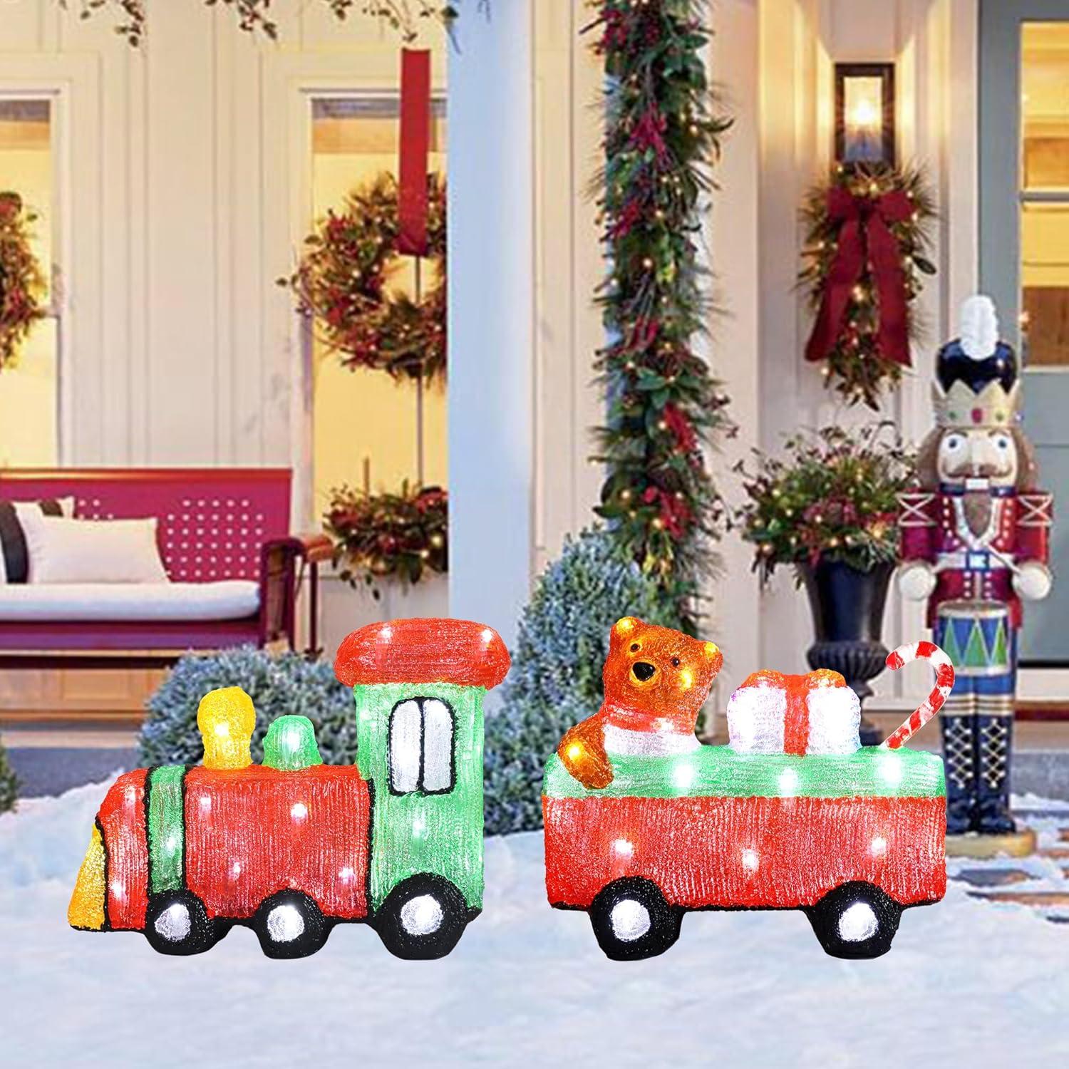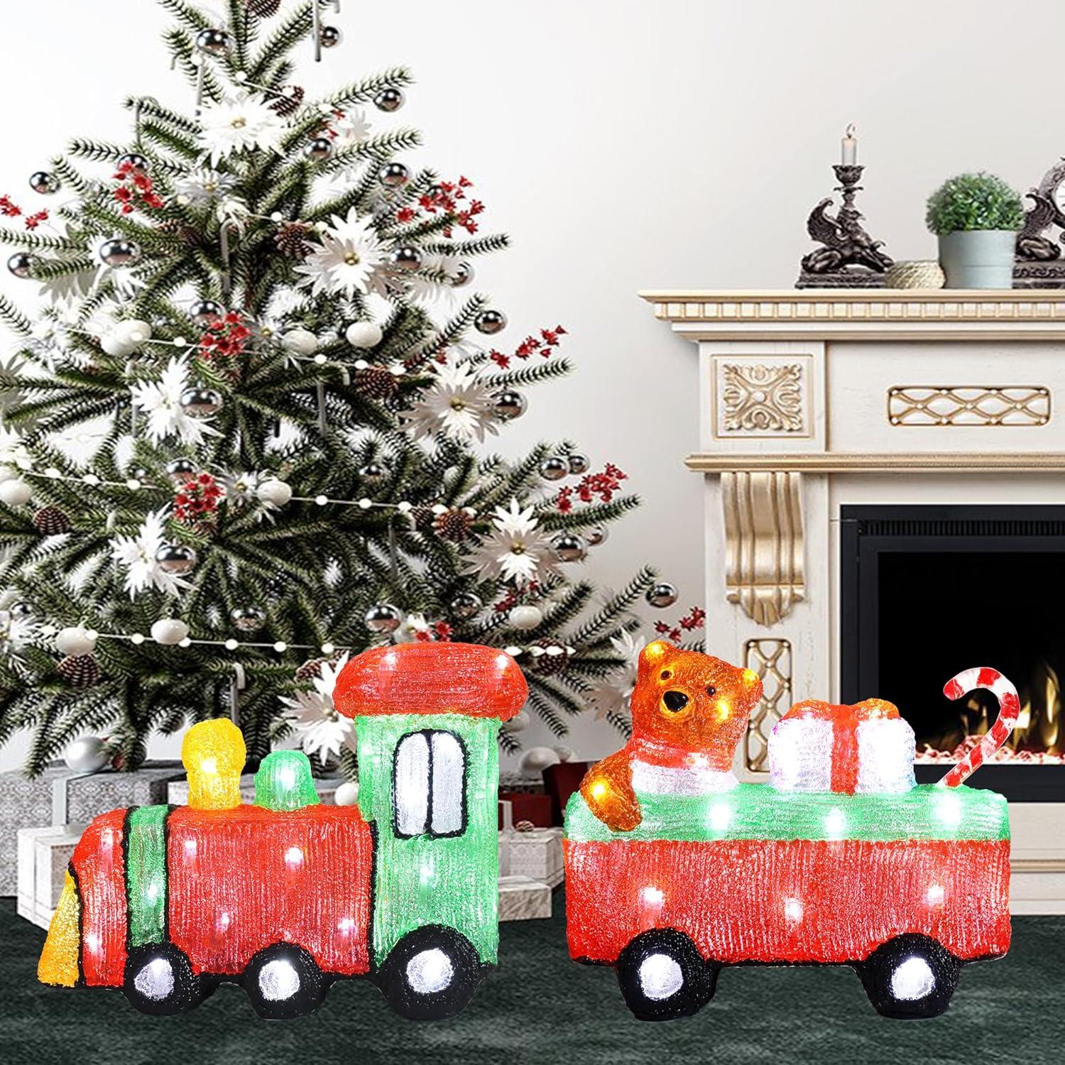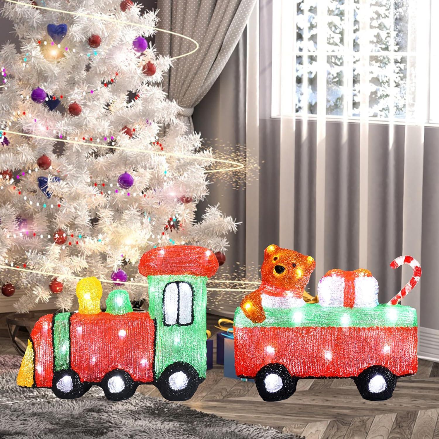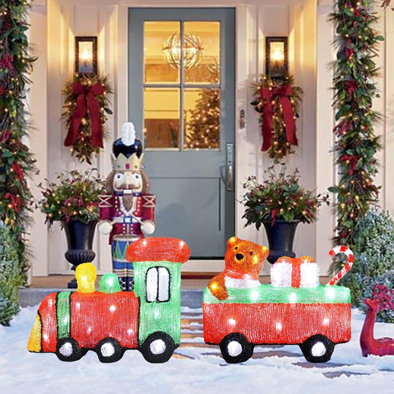 • [Waterproof Design]: Our Christmas train decoration is made of high-quality acrylic material that can withstand harsh weather conditions. It features an IP44 waterproof rating, making it resistant to rain, snow, and other weather conditions. So, it can be used in any weather to create a beautiful and unforgettable holiday atmosphere.