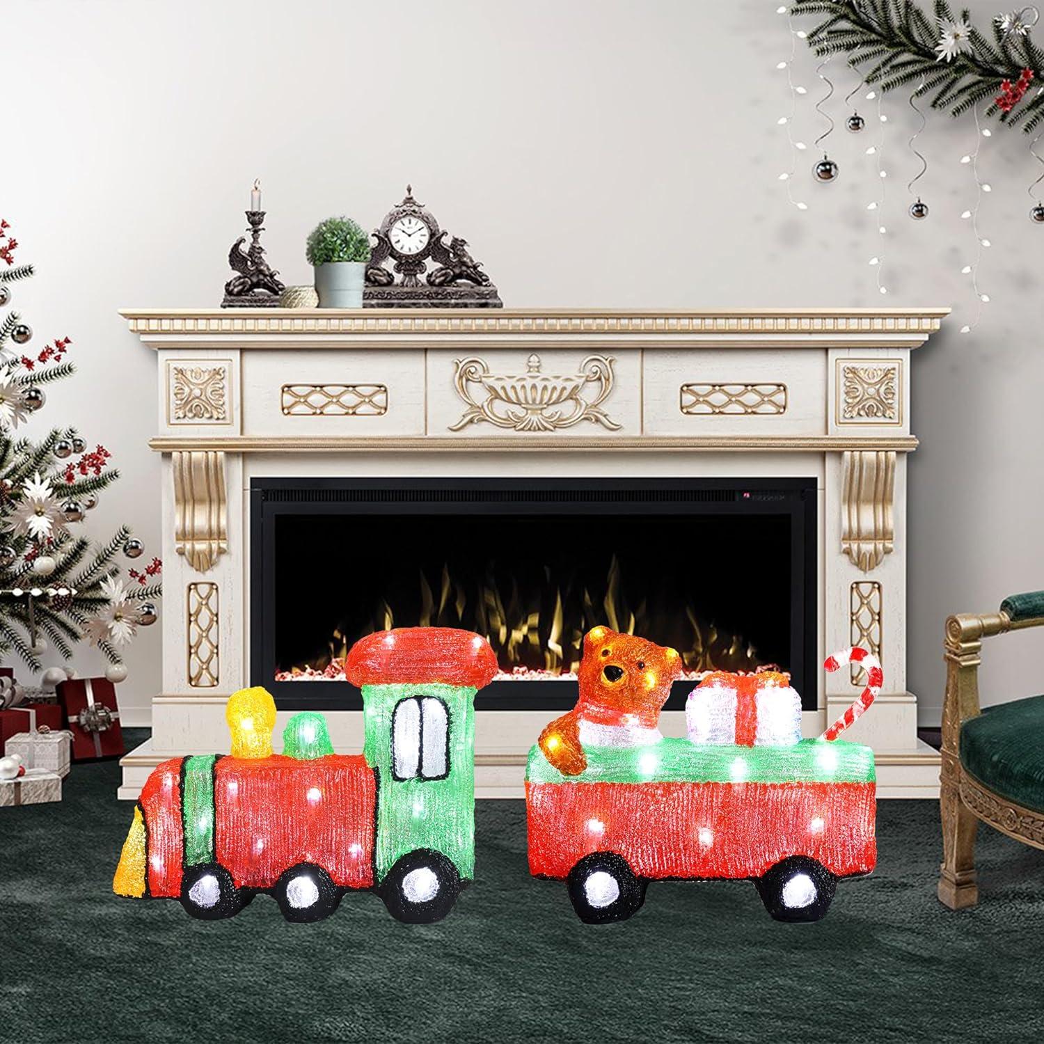 Mycznsyard Acrylic Christmas Train Decoration 80 LED Lights Timer Function 16.4 FT Plug in Waterproof Design for Indoor/Outdoor Use Decorative Lights for Holiday Yard Party Christmas (White Light)