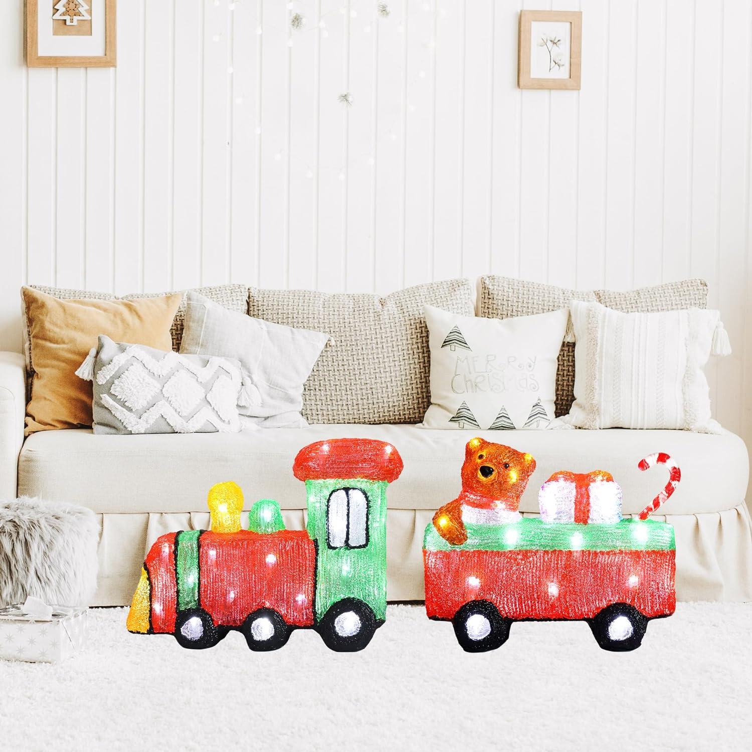 • [Plug In Power Supply]: Our acrylic train comes with a reliable transformer power supply and a 5-meter long cord, making it safe and convenient for both indoor and outdoor use, providing an ideal decoration for your front porch, garden or balcony.