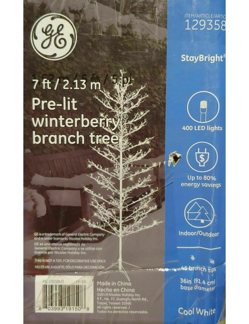 NEW – GE 7′ Ft Winterberry White Pre-Lit Christmas Holiday Tree 400 LED Lights