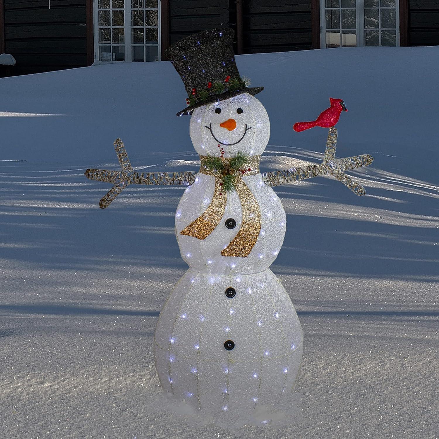 Northlight 72 White and Black LED Lighted Snowman with Top Hat Christmas Outdoor Decoration