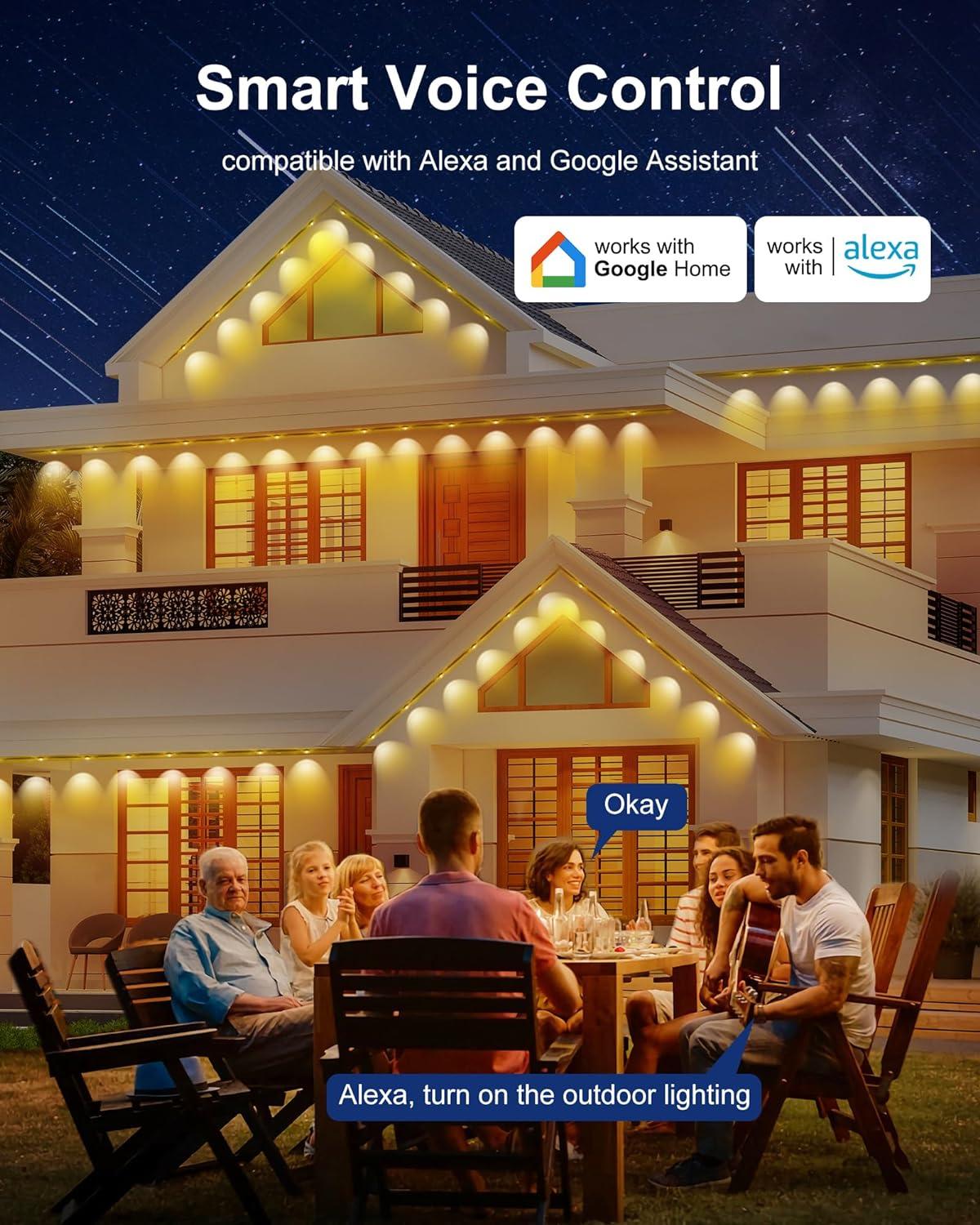 • Smart App & Voice Control: You can control the colors of each light independently using the Tporing App and set timer functions for your Christmas parties. Add a little Christmas cheer and create a spooky atmosphere for Halloween. Additionally, these outside lights are compatible with Alexa and Google Assistant for voice control, allowing you to control them with your voice commands.