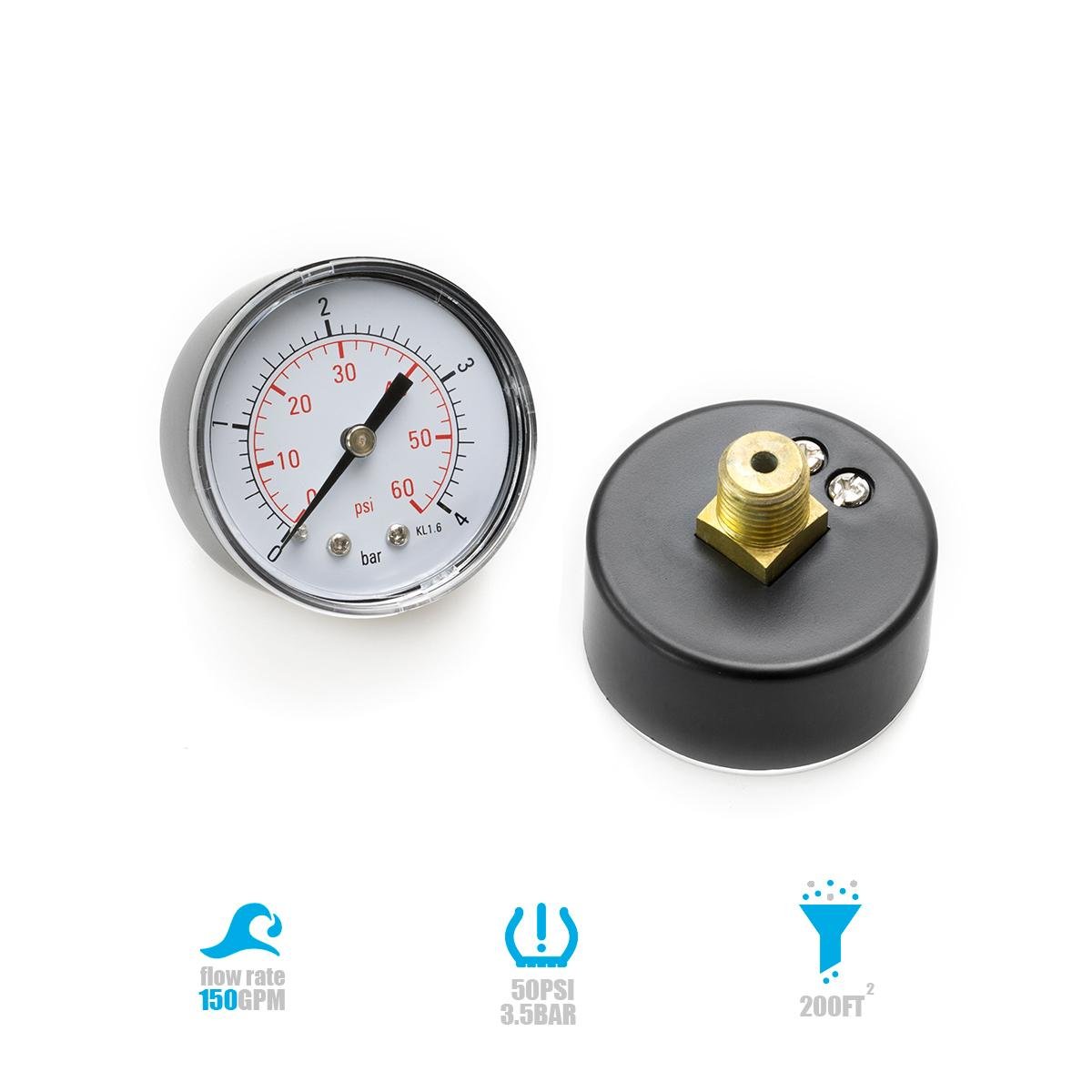 • Attractive, durable filter head may be rotated to conveniently position pressure gauge and manual air relief