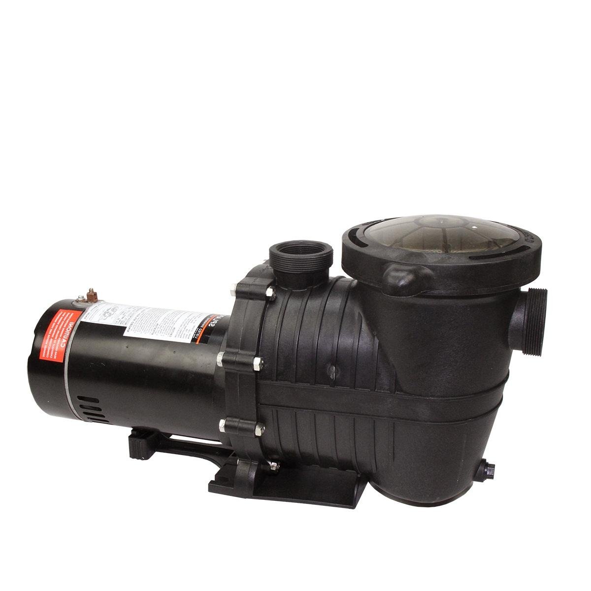 This self-priming in-ground pool pump offers commercial pool pump quality for residential pools. It ensures stability, superior performance, and quiet operation. This pump is essential for an organized pool. Product Features: Self-priming (suction lift up to 6′ above water level). One-piece strainer housing molded of corrosion-proof reinforced thermoplastic for extra durability and long life. High-performance motor design for quieter, cooler and more energy-efficient operation. Specially constructed clear lid with locking ring design is easy to open and lets you see when basket needs cleaning. Large strainer basket is always locked in place. American design mechanical seal using carbon to ceramic sealing surfaces. Stainless steel shaft. High profile motor mounting base . Designed and manufactured to meet all CSA and ETL requirements. Fully factory tested. Application: Ideal for all above-ground, on-ground and small in-ground pools. In-ground spas or in-ground pool/spa combinations. Technical Data: 1 H.P. Voltage: 115/230. Hertz: 60. Amps: 9.7. Dimensions: . Pump: 11.61″H x 22.1″W x 9.92″L. Pipe: 1.5″ diameter. Note: pump only – hoses and attachments not included