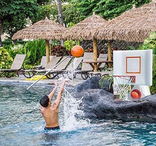 • BASKETBALL FOR POOL COMPLETE SET – Comes with a 15-inch rim kit, a white, all-weather nylon net, 2 basketballs and decals. Deck Space Required At Pool Edge: 3 x 3 feet/ Rim Height from Pool Deck: 25.25 inches. Also great basketball hoop for pool inground or above ground.