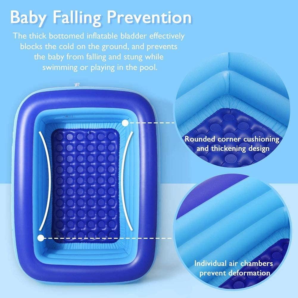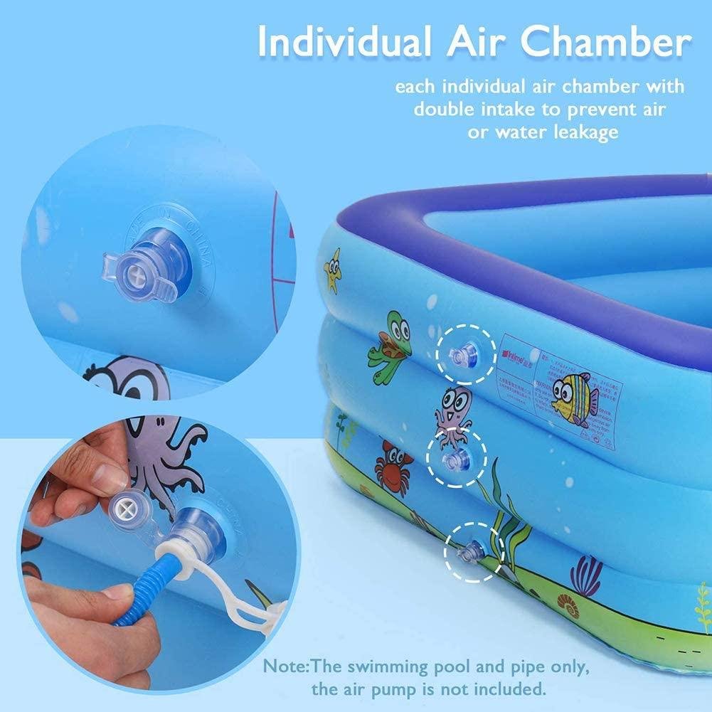 • STURY & STABLE – 2 individual air chamber in each layer, the inflatable pools can withstand extra weight while preventing air leakage. So the swimming pool is always ready with fun for you