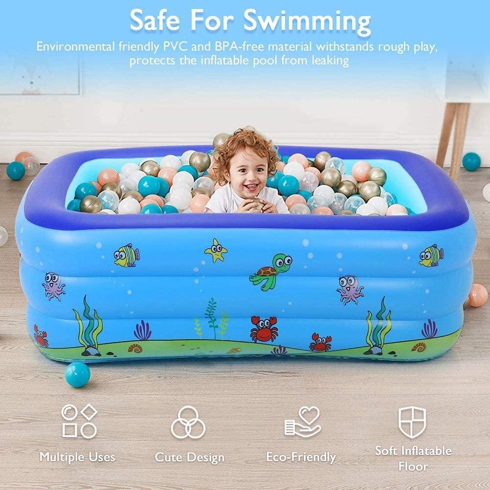 • EASY TO USE – The family lounge pool is easy to set up, you just need to simply spread out on the ground level, Inflate in 3-4 minute by electric pump (not included). fill the pool with water or balls and enjoy.