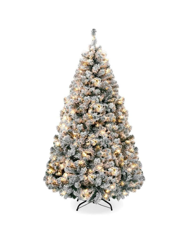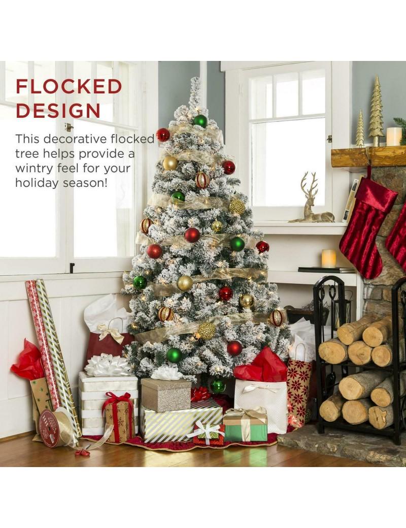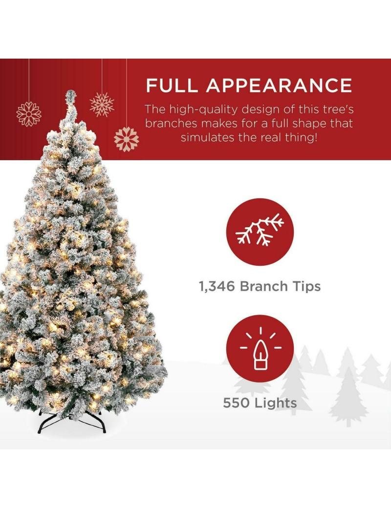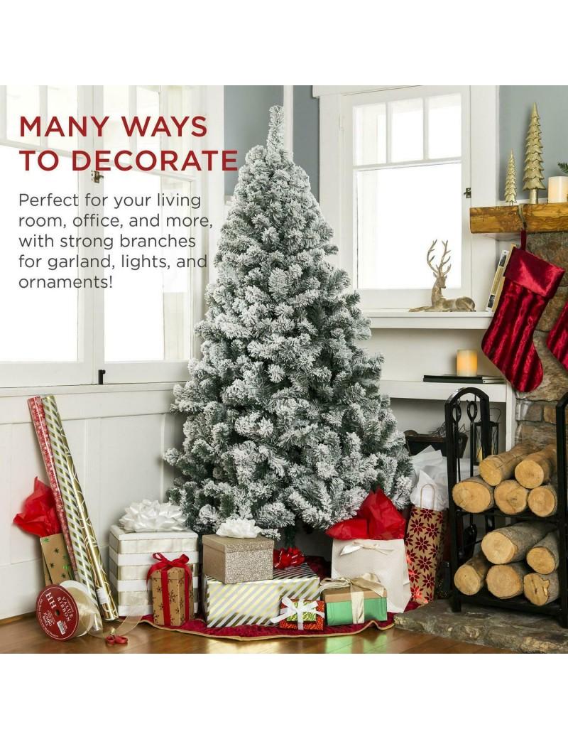 Pre-Lit Artificial Pine Christmas Tree Snow Flocked Decor With Warm White Lights