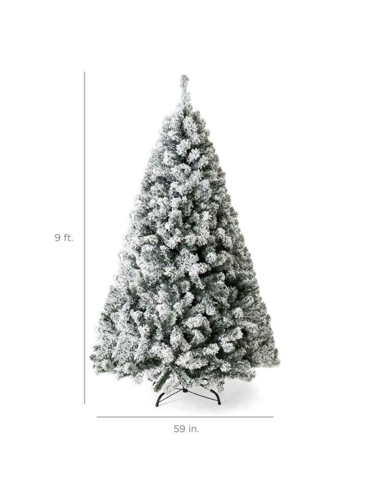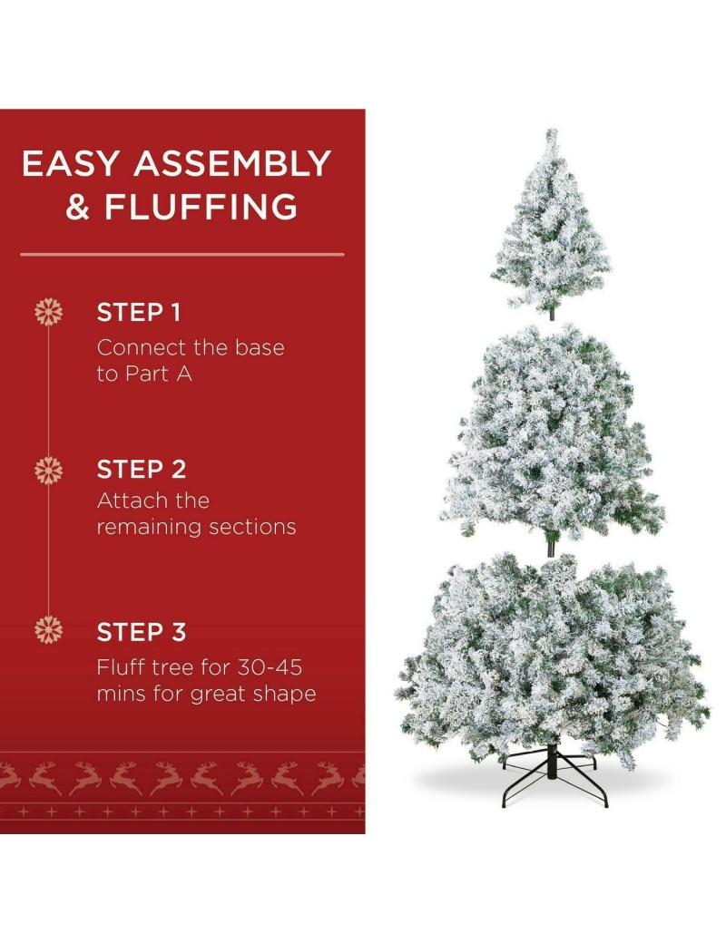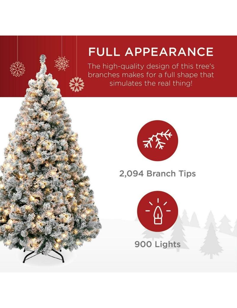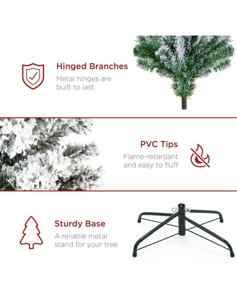 Pre-Lit Artificial Pine Christmas Tree Snow Flocked Decor With Warm White Lights