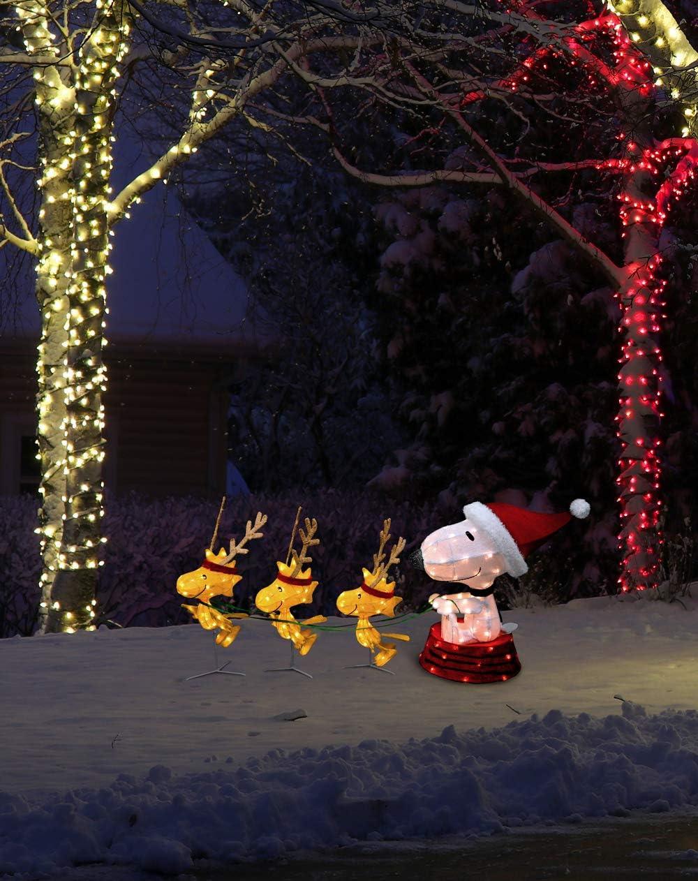 • CHRISTMAS DÉCOR: Cheerful statue features loveable Snoopy as Santa in his sleigh with Woodstock as reindeers, perfect for decorating your home in Christmas joy!
