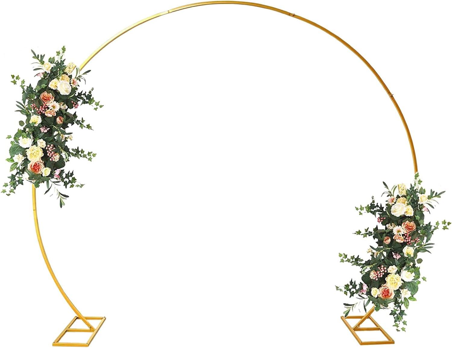 • ♥Fashion WeddingArch Background: The iron ring archframe is made of durable metal material, it stands independently and is sturdy and durable, and the heavy duty base can makes the round frame stand firmly.