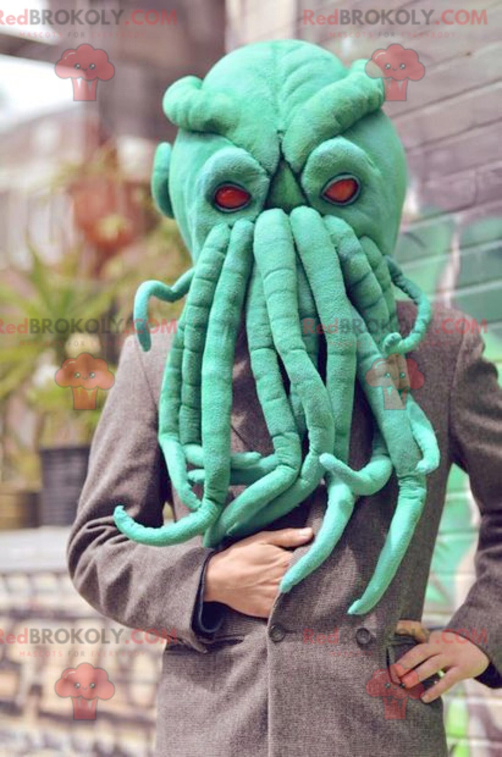 Very realistic green octopus head mascot