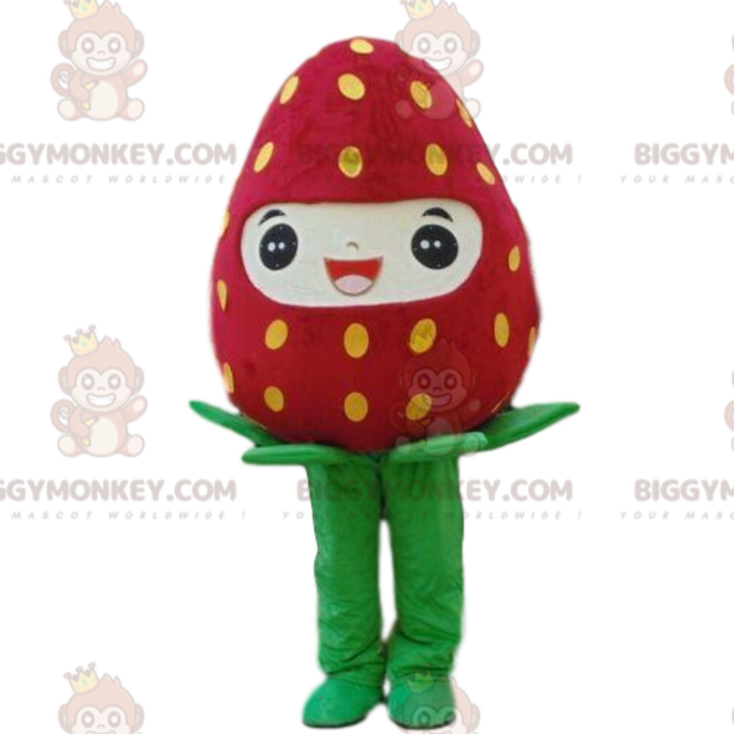 Giant Smiling Strawberry BIGGYMONKEY™ Mascot Costume, Red Fruit Costume