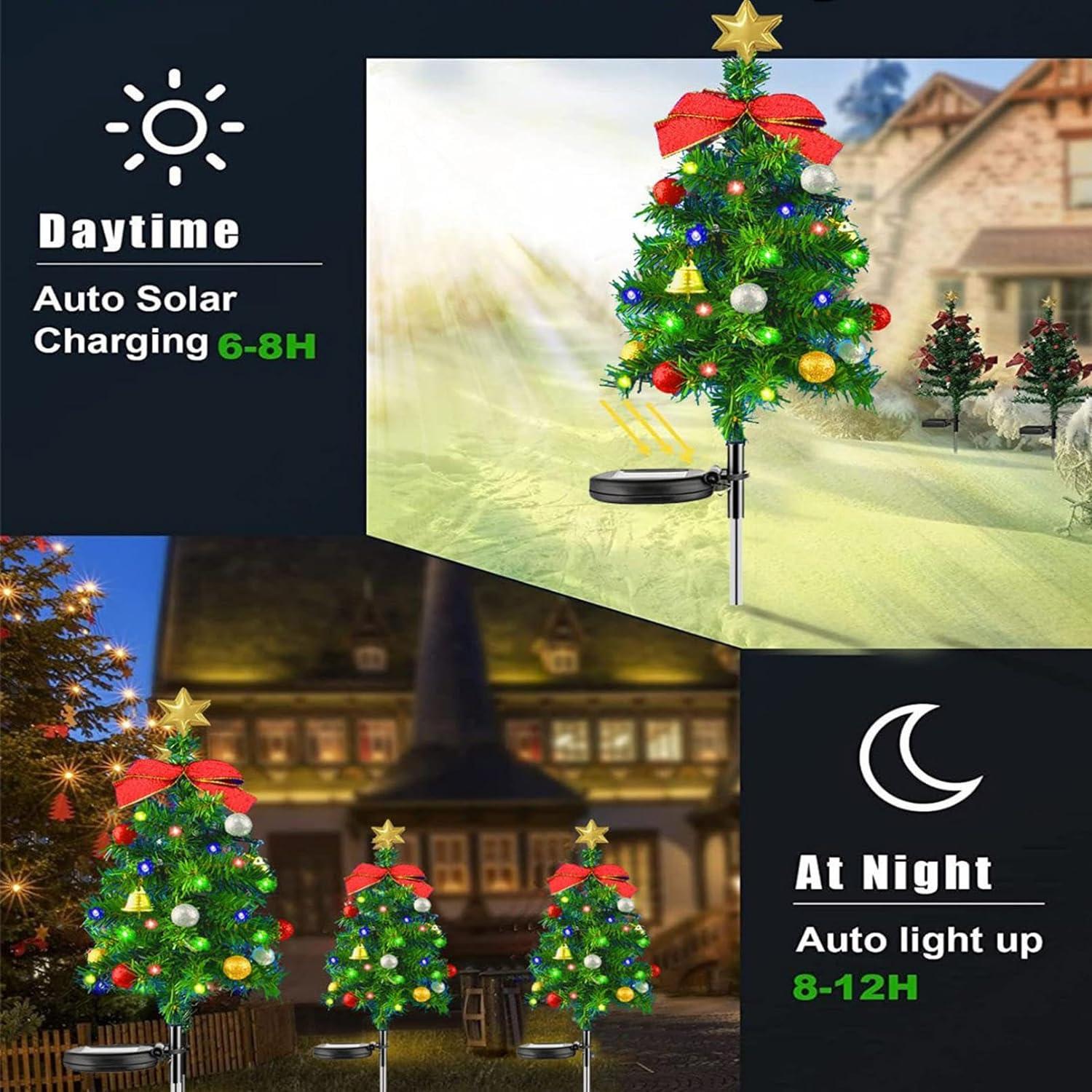 Solar Christmas Decoration Light LED Christmas Tree Plug in Light with 2 Modes,Solar-Powered Rechargeable Panel Outdoor Garden Decoration Ornament Light for Patio Home Fence Decor 1pc