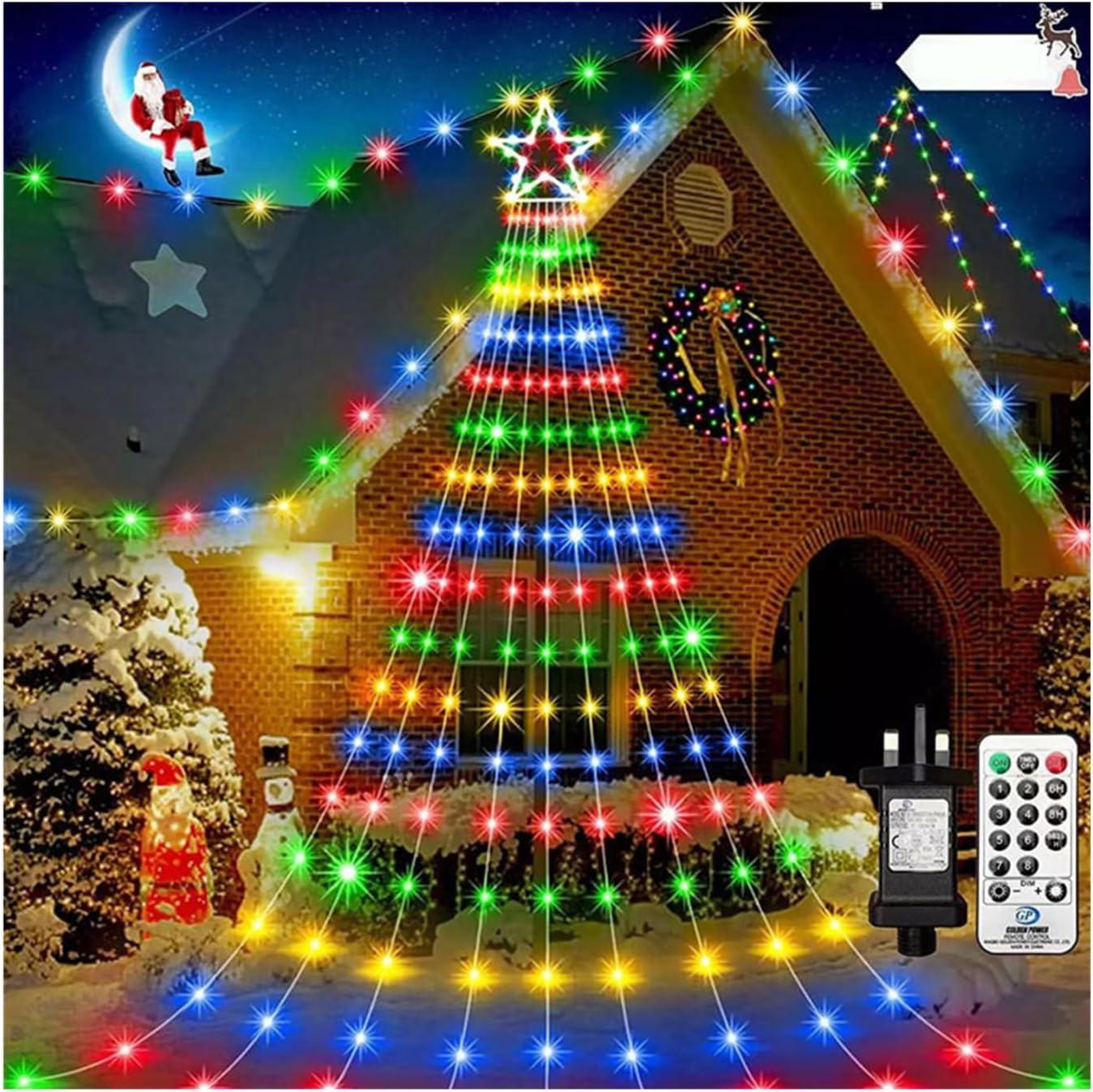 Christmas Decoration Lights, Christmas Outdoor Star String Lights, 200 LED Waterfall Christmas Tree Lights with Star Topper, Indoor Outdoor String Lights for Yard, Party, Home, Holiday (Multicolor)