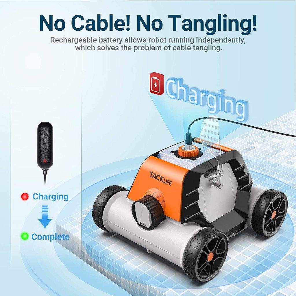 Tacklife Robotic Pool Cleaner, 90mins IPX8 Cordless Automatic Pool Vacuum With 2pcs Motors For Above/In-Ground Flat Pool Up To 860 Sq.Ft Orange