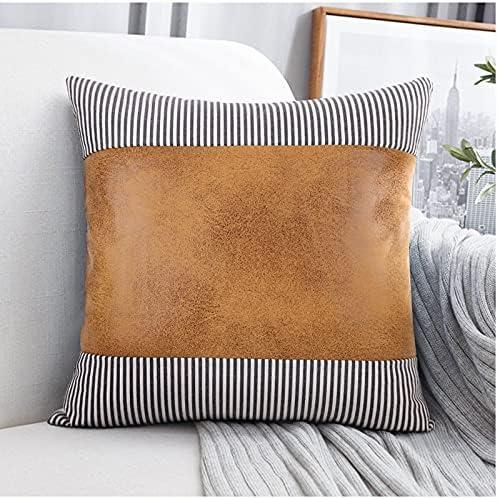 TaLcuS Brown Faux Leather Cotton Cushion Cover 45x45cm for Couch Bed Home Decoration Pillow Case