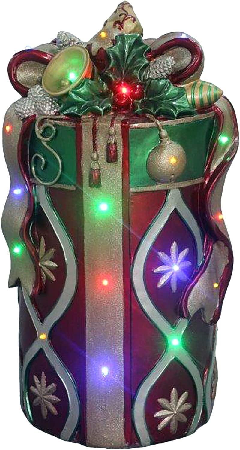 Fraser Hill Farm FFRS026-GBFF1-RD Indoor/Outdoor Oversized Christmas Long-Lasting LED Lights, 26 Tall Round Gift Box with Bow in Red/Gold Holiday Decoration