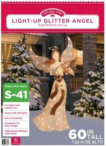 Global Merchandise Holiday Time Light Up Glitter Christmas Angel Outdoor Decoration 60inch, Yellow Brown