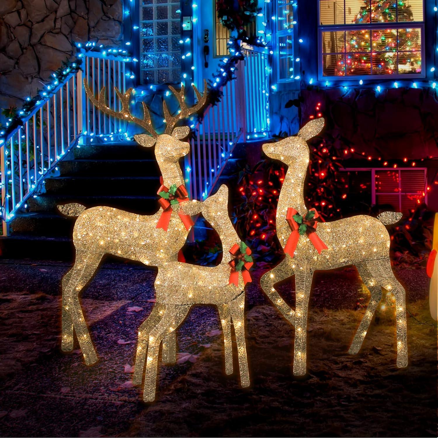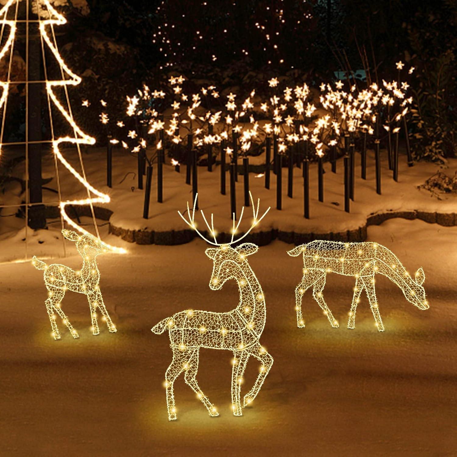 HJDSUDU 3-Piece Lighted LED Christmas Deer Family Set, Lighted Christmas Decoration Deer 3 Piece with Lights, for Outdoor Christmas Reindeer Yard Decoration