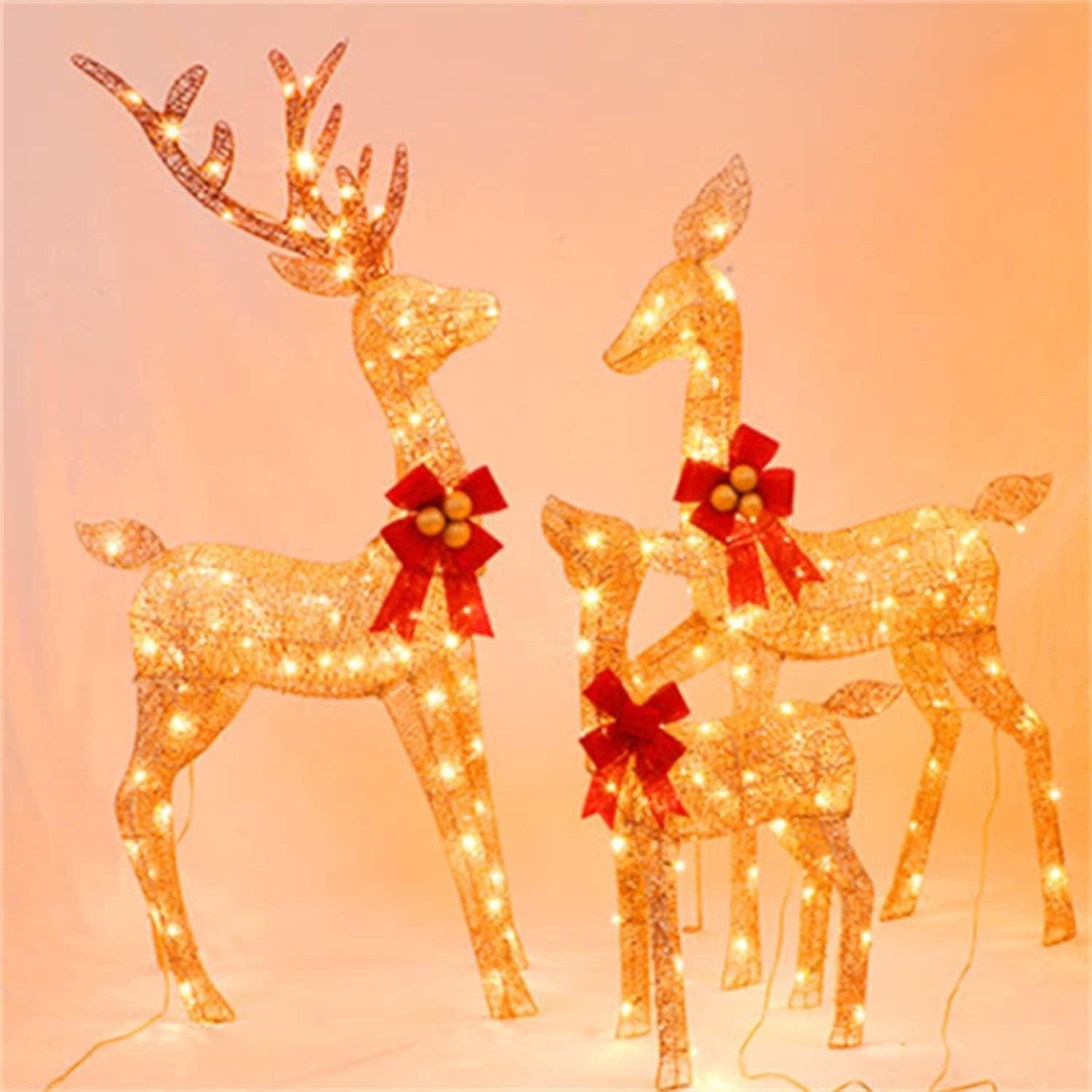 • 【90 LED Lights】The glowing reindeer family features 90 LED lights, which are energy-efficient and long-lasting.Thanks to the mesh design, it produces a magnificent effect while light.