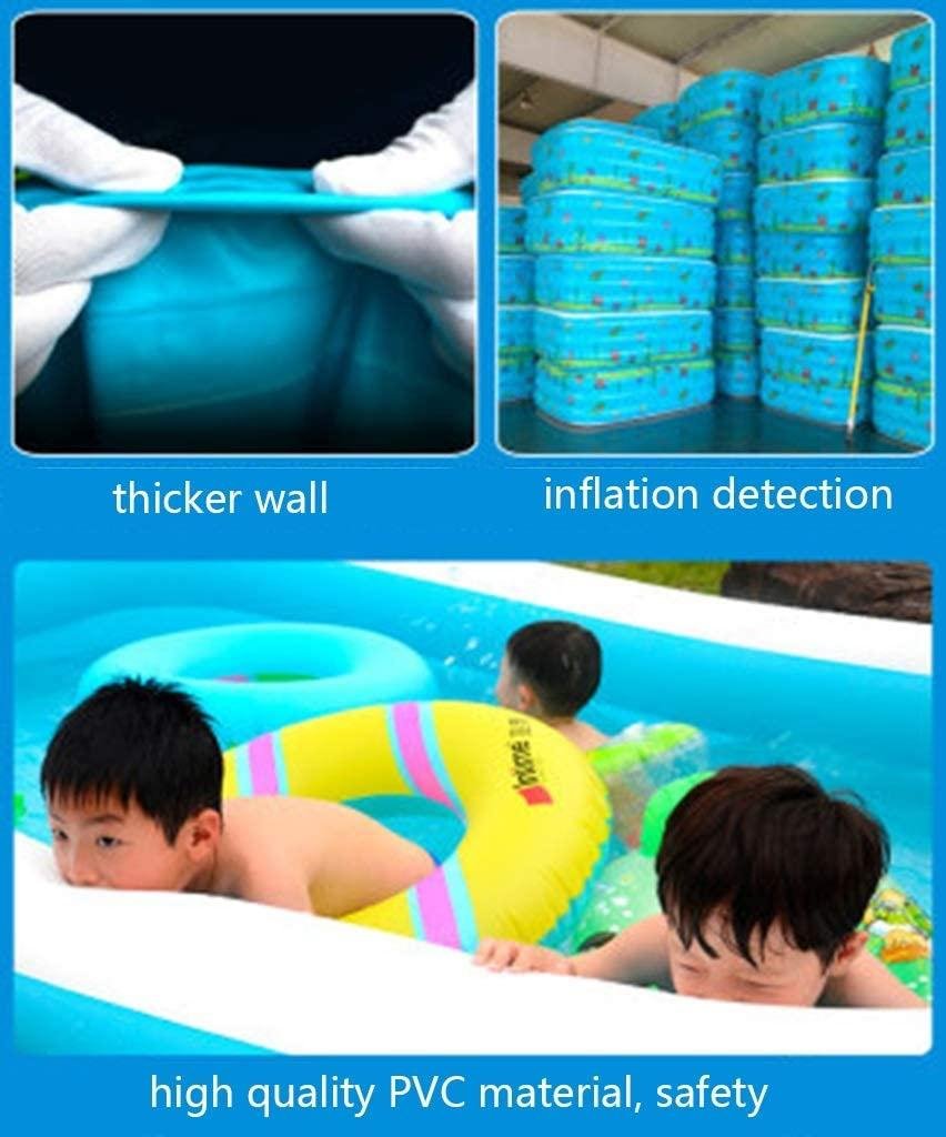 • Large Family-size Pool: With multiple sizes (Different air pumps will cause a little deviation in size) , it can hold up 3-7 persons to enjoy a splashing pool party in the backyard. You can sit in & spacious enough to swim in. Our kiddie pool also can become a ball pit, allowing your children to play indoors and let them have their own paradise in rainy or inconvenient weather.