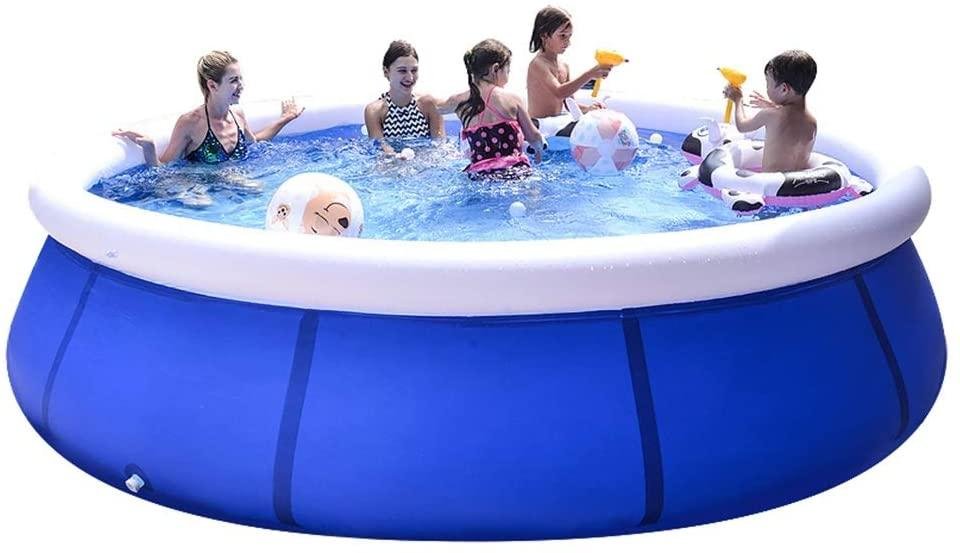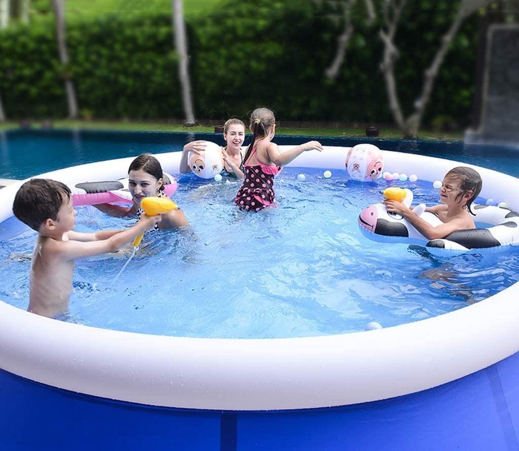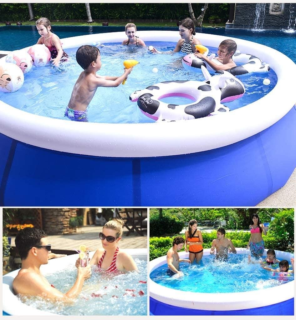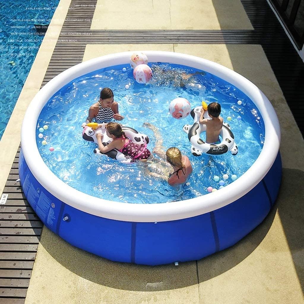 - Large Family-size Pool: With multiple sizes (Different air pumps will cause a little deviation in size) , it can hold up 1-9 persons to enjoy a splashing pool party in the backyard. You can sit in & spacious enough to swim in. Our kiddie pool also can become a ball pit, allowing your children to play indoors and let them have their own paradise in rainy or inconvenient weather.