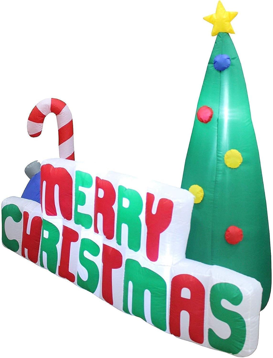 - 6 Foot Tall Christmas Inflatable Merry Christmas Tree with Candy Cane & Ornaments Inflated size measures (L x W x H): 94 x 32 x 72 inches