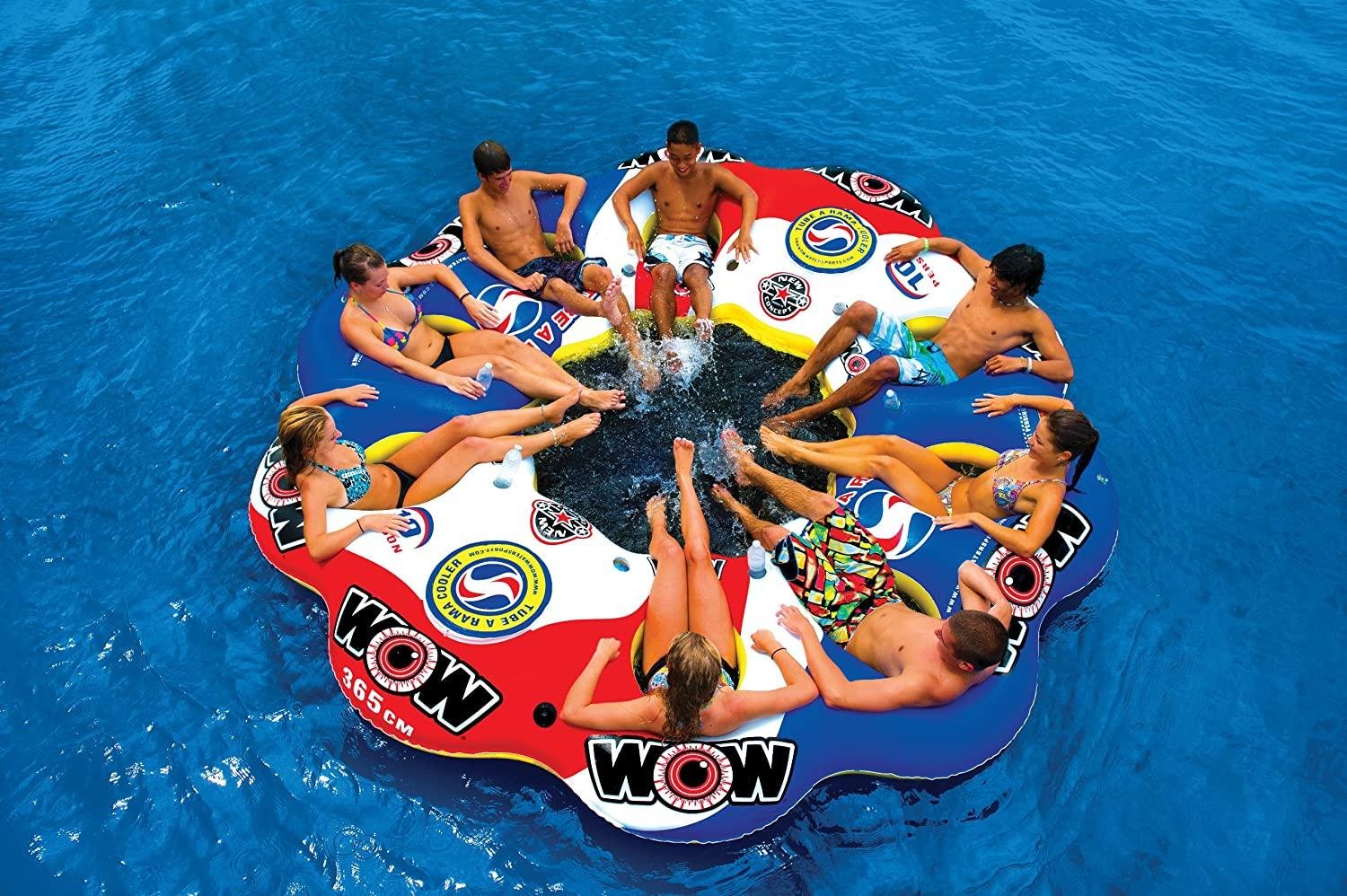 WOW World of Watersports Tube A Rama Floating Island 1 2 3 4 5 6 7 8 9 or 10 Person Inflatable Floating Island, 13-2060