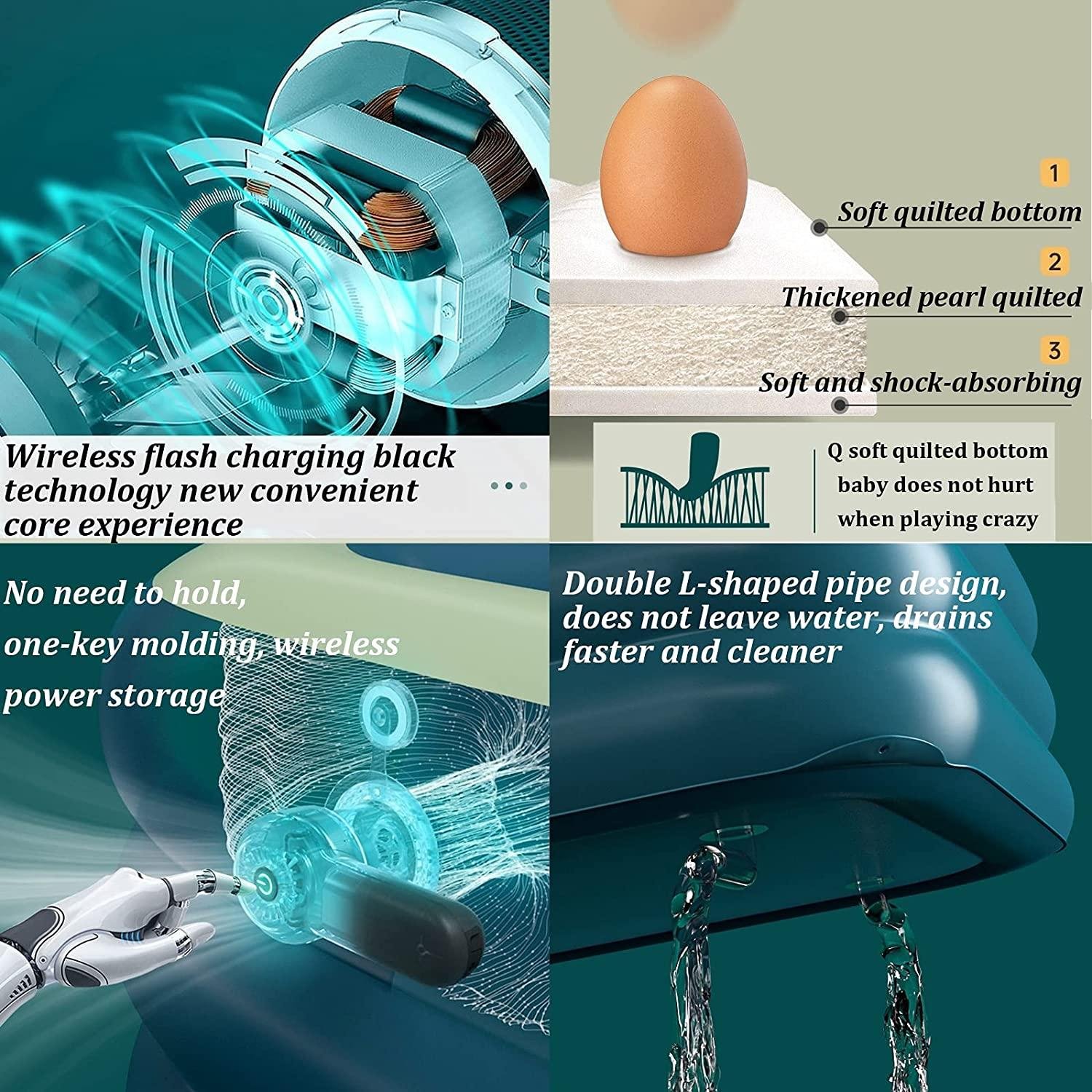 • [Wireless fast charging]] type-c charging interface, wireless charging does not need to be hand-held, you only need to press the button, it will automatically charge, 3-6 min will fill the 118″*68.9″*23.6″ large Family Swimming Inflatable Pool.