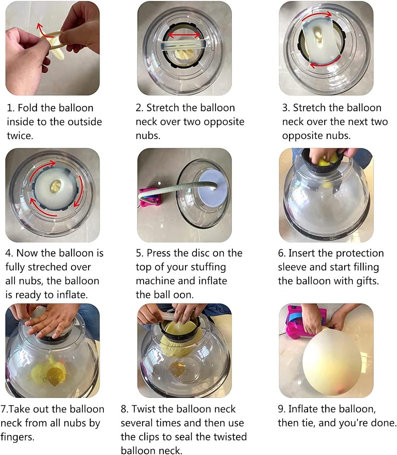 • [How It Works]: Balloon stuffer machine was work in a closed sphere, the balloon expands and the air is squeezed out, which can simulate the vacuum state very well, and the use effect is excellent. Packaging includes: 1*Balloon Stuffer Machine + 1*Inflatable tube.