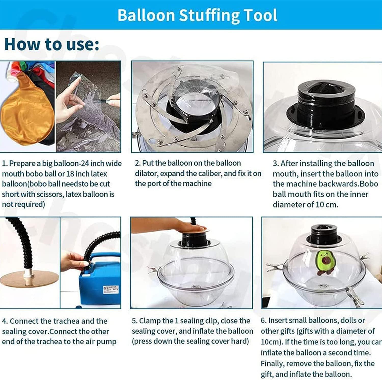 - 1.【Balloon Filler】: Balloon filling machine kit can be put into the filling of balloons with teddy bears, small balloons, flowers, soft toys and any other gifts. A great way to wrap balloon gifts and everyone will love it!